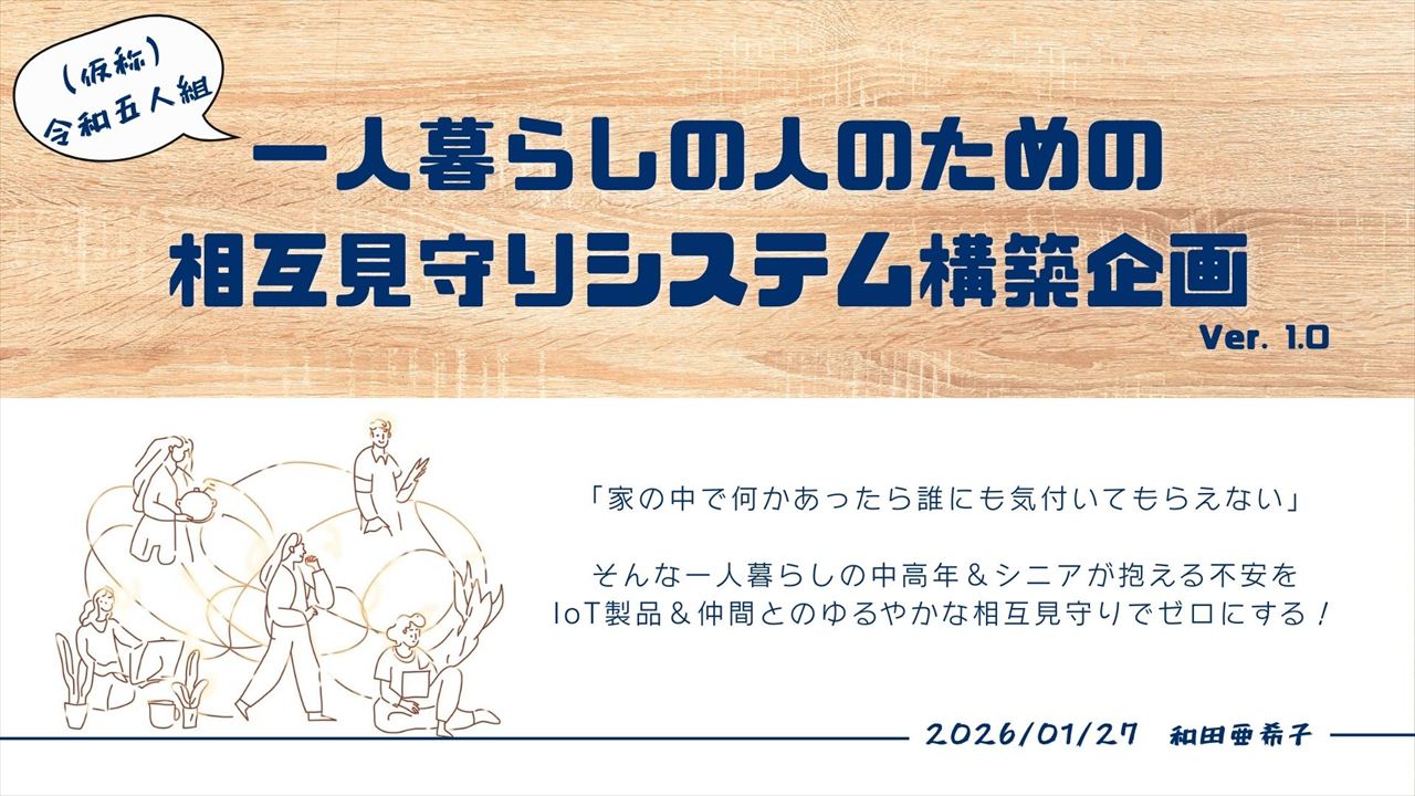 一人暮らしのための相互見守りシステムを企画!~仮称「令和五人組プロジェクト」