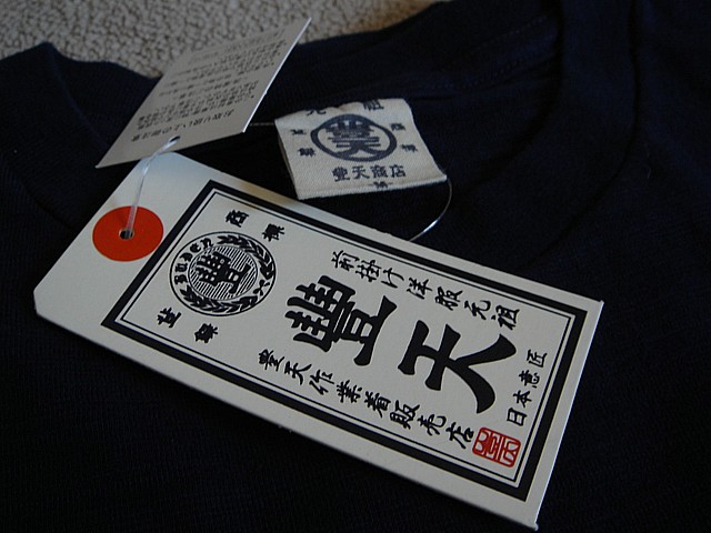 豊天商店らしく、素材も文字もレトロっぽさがあっていい(普通の綿Tシャツなんだけど麻みたいなざくざくした感じがある)。