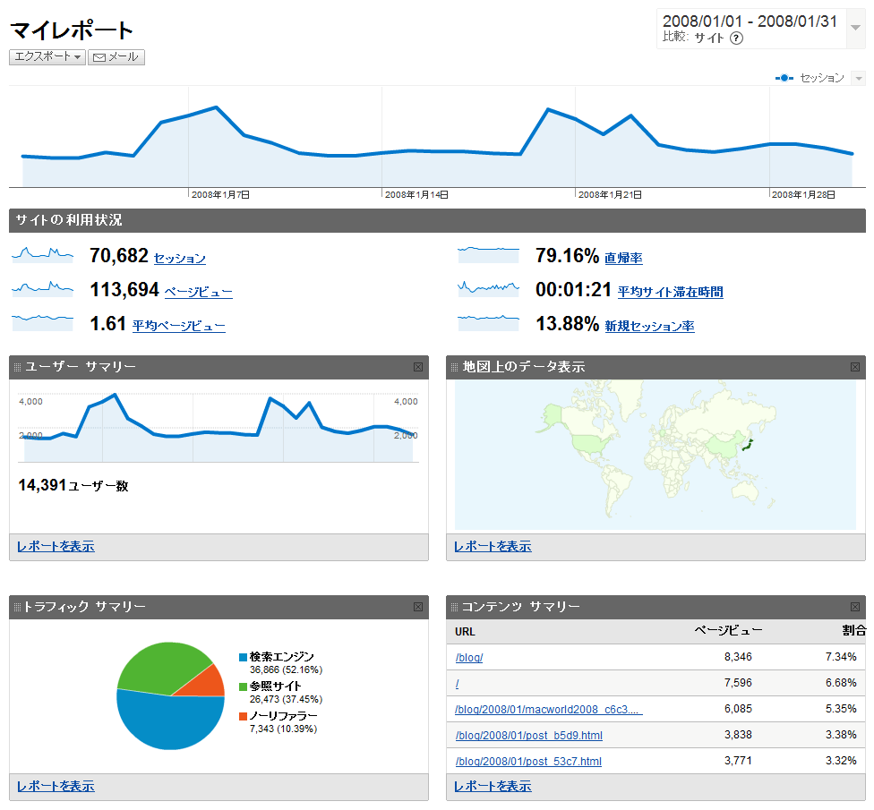 月間 113,694PV/70,682セッション (日平均 3,667PV) |