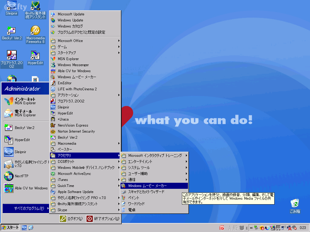 この「Windowsムービー メーカー」は、Windows XPやVistaなどに標準で入っている。