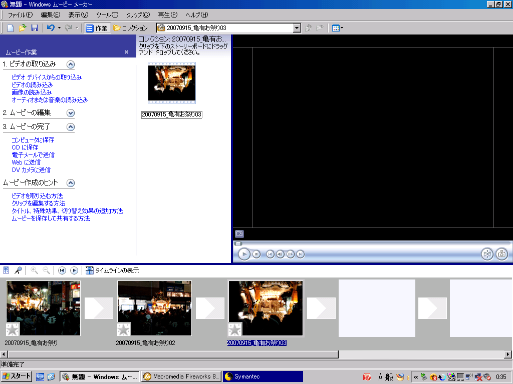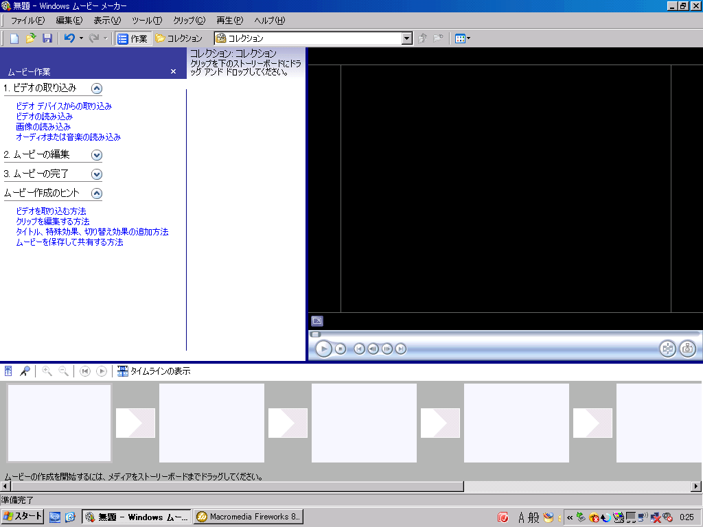 これが、「Windowsムービー メーカー」(XP版)の画面。
