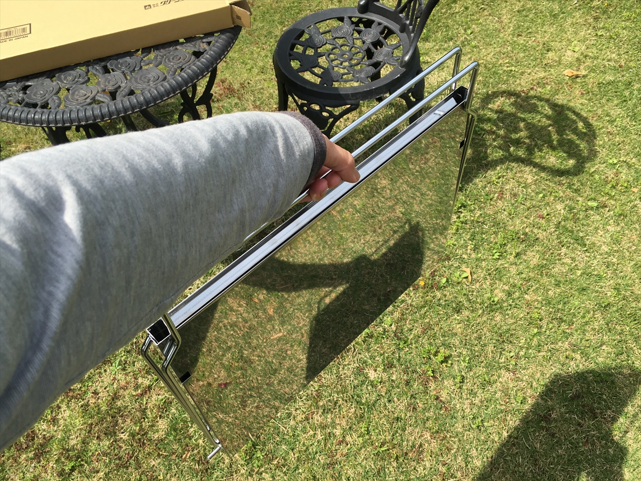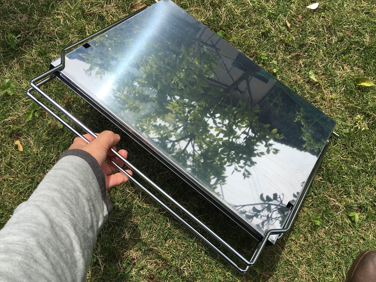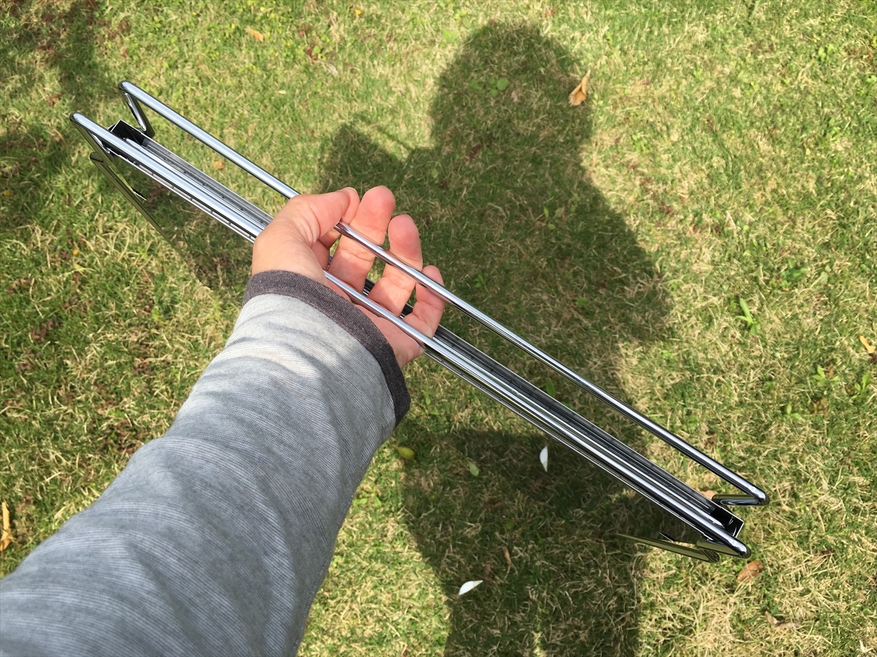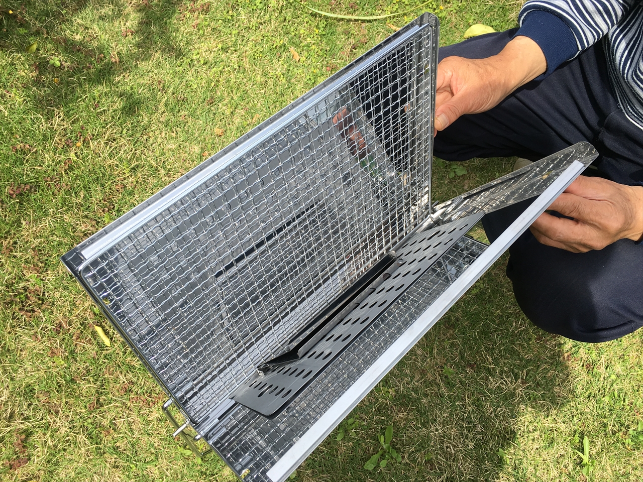 この状態でビニールに入れて倉庫や押入れに収納しておけばいい。隙間があればきゅっと差し込めてしまう厚みだろう。車の中に入れっぱなしにしても邪魔にはならない。ドライブ途中にいい場所見つけたら、炭と食材を調達していつでもバーベキューできる。