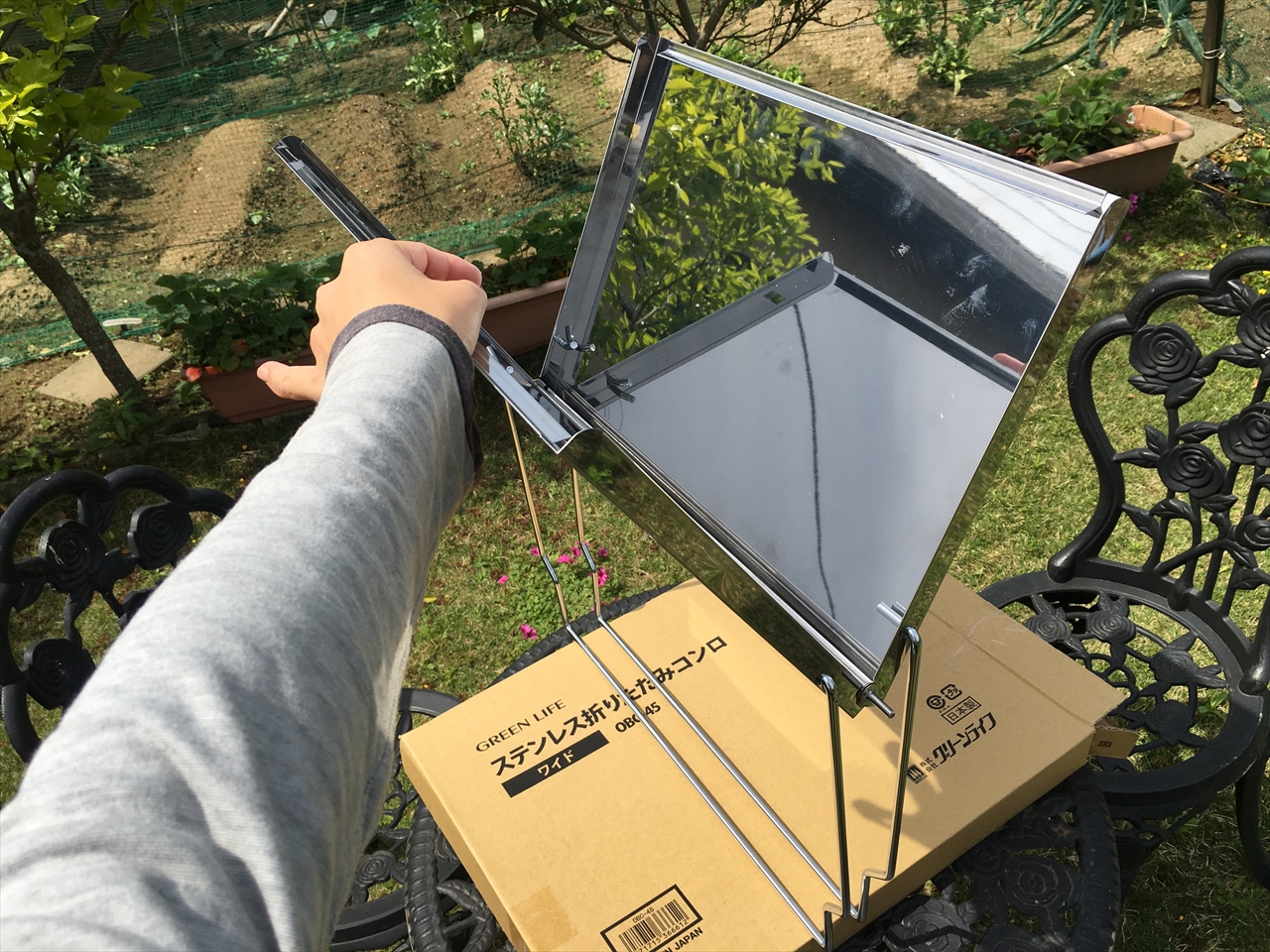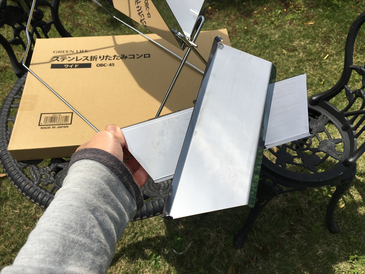 モニター当選したベルメゾンオリジナルの超コンパクトバーベキューコンロが届いた。折りたたむとA4用紙2枚分というサイズ。しかも薄いので持ち運びはもちろん収納も便利。しかも組立簡単というしろものだ。