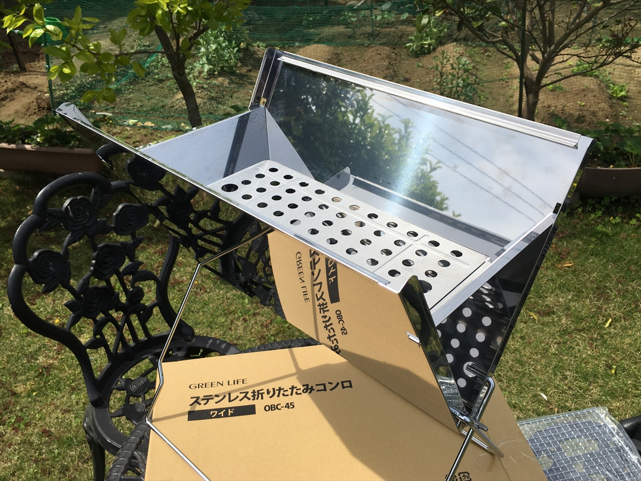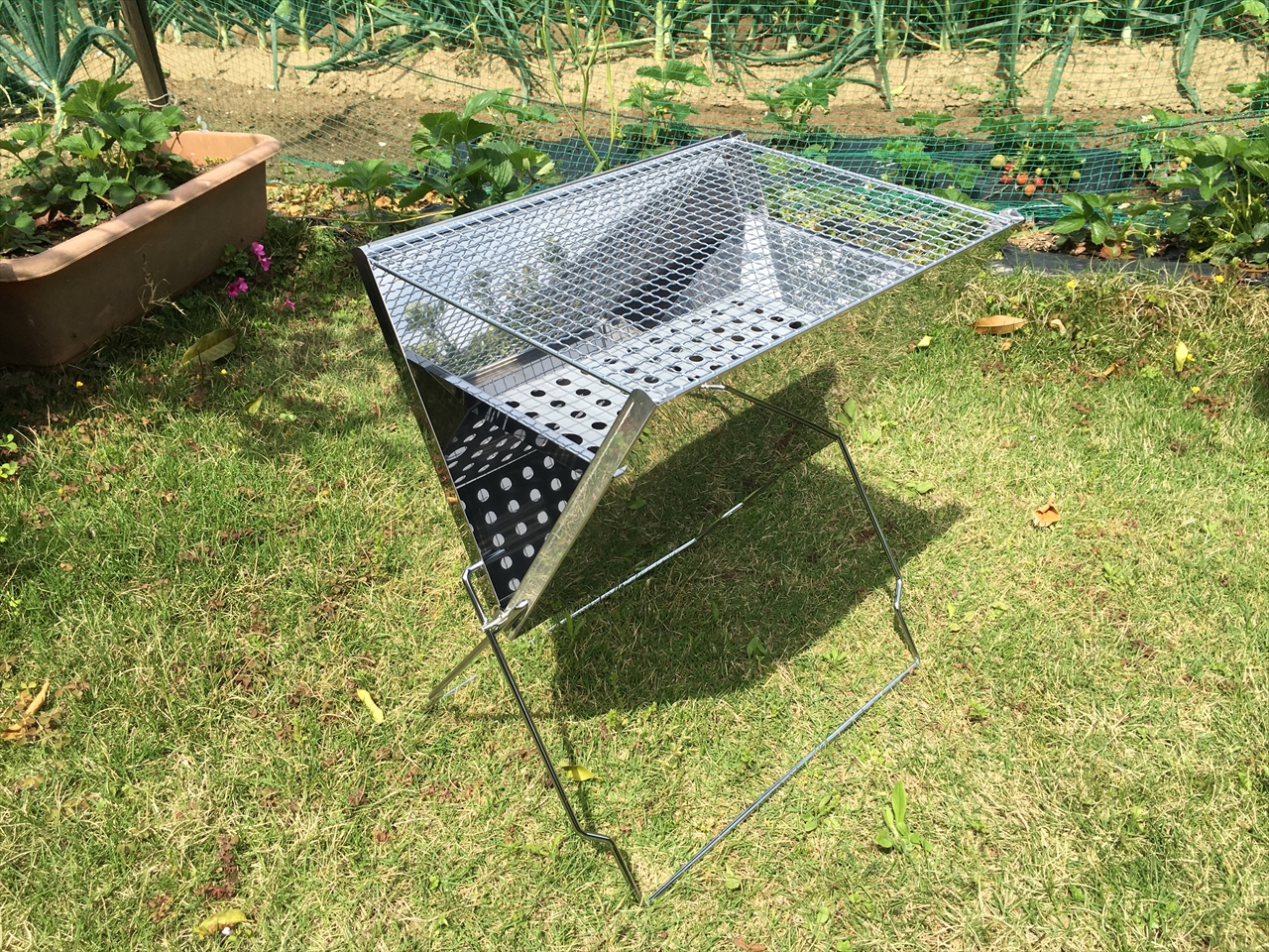 4人のバーベキュー用に最適サイズということだが、確かに家族やグループ4~5人ならちょうどいいだろう。あるいは大人数のバーベキューであれば、「サブ」として使ってもいいと思う。こっちで魚介類を焼くとか。