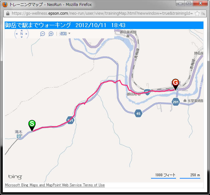 地図で急激に高度が低くなっているあたりが多分橋の上。そこから道路まで上がってきた時、「右だっけ?左だっけ?」と足を止めた時のことも、このデータを見ると思いだせる。