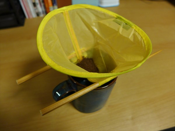 折りたたみだとスペースもいらないし、柔らかい素材なのでカップ内に沈めることもでき、緑茶・紅茶もこれで入れることが可能。