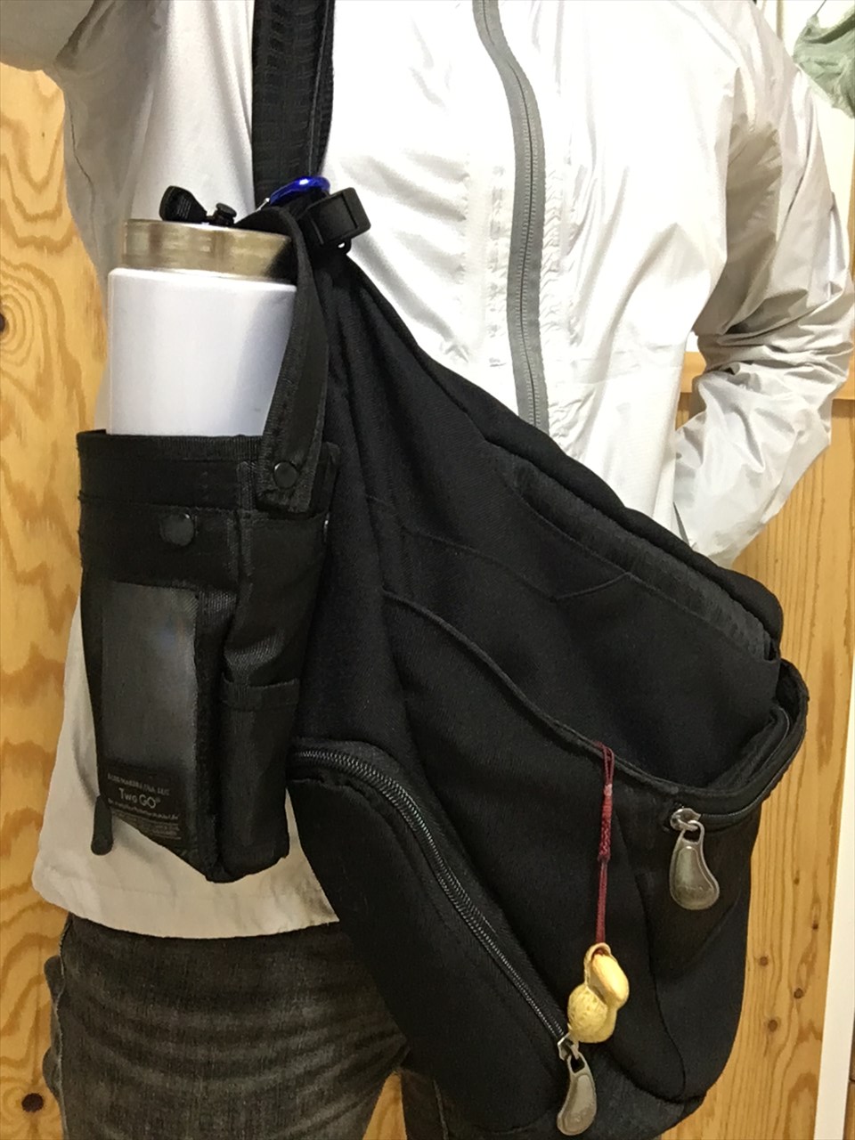 これは愛用バッグなのだが、冷たいペットボトルなどを入れるとバッグの中が濡れてしまう。「#2GO」を組み合わせることでその悩みが簡単に解決する。