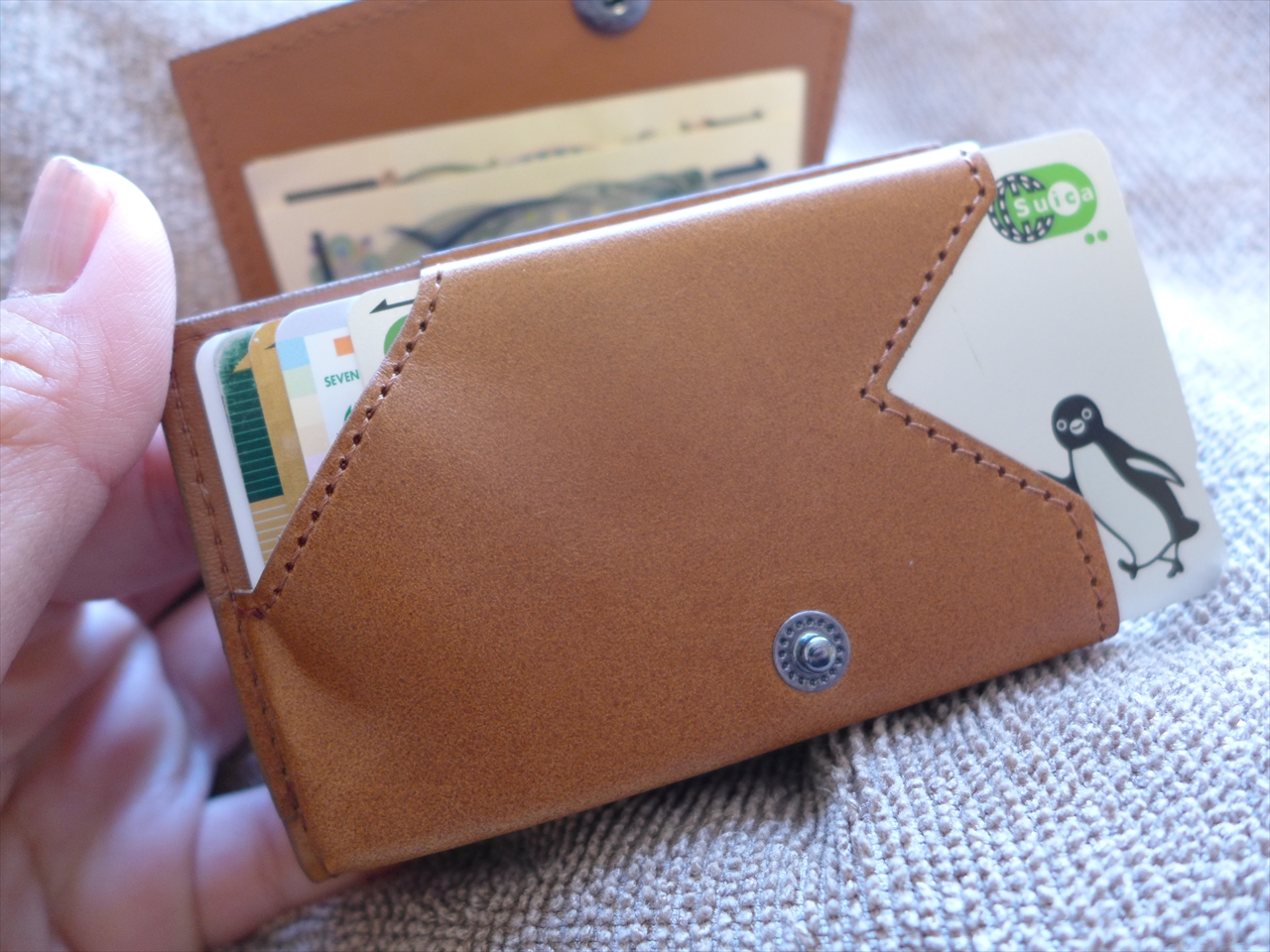 スペック的にはあともう1枚入るそうなのだが、初期はまだ皮が硬いこともあり、5枚入れてしまうと取り出すときにちょっときつい。4枚もしくは4枚+薄いカード1枚がベストだと思う。