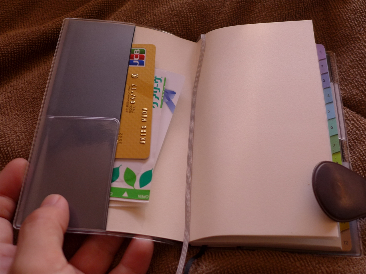 ただ長期間の外出時は、もう一枚クレジットカード持ち歩く必要もあったりする。そんな時は手帳に挟んで。