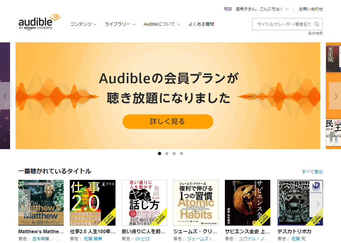 去年から、Amazonのオーディオブックサービス「Audible」会員になっています。