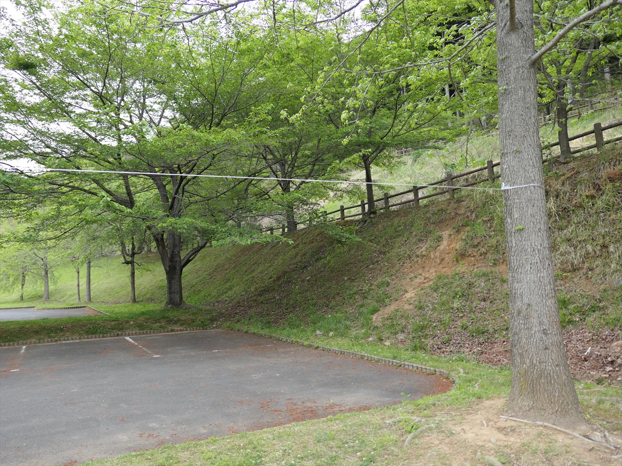 サイト内にある木2本の間にビニール紐を張る。