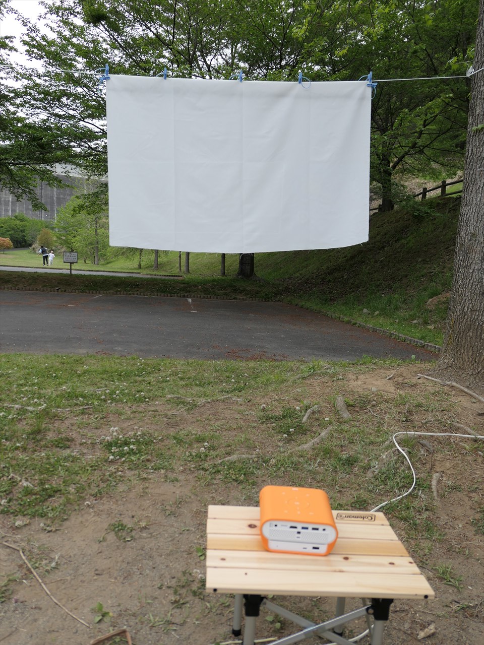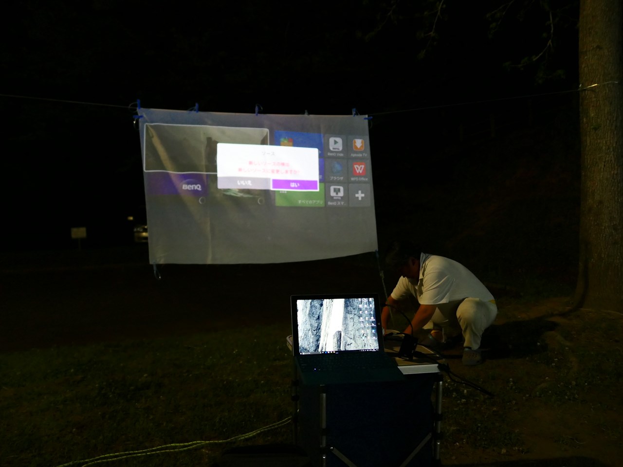 もちろんキャンプ場にプロジェクタを持参するのは人生初。