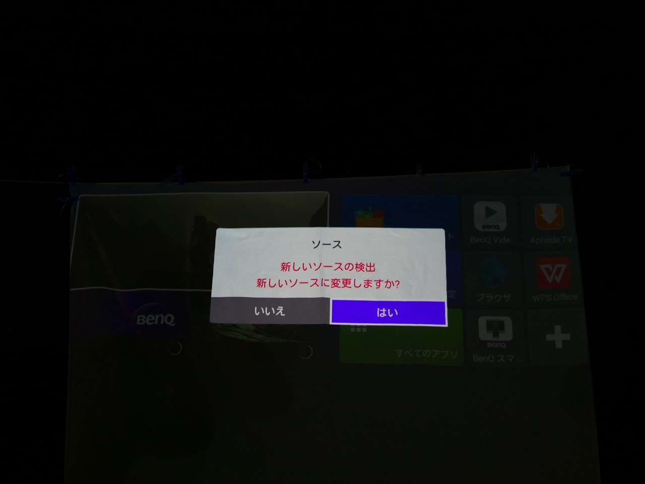 日没前でまだ明るいが、試しにプロジェクターの電源を入れてみるとくっきりと映像が投射された。ホーム画面の小さな文字までしっかり見えるほど。
