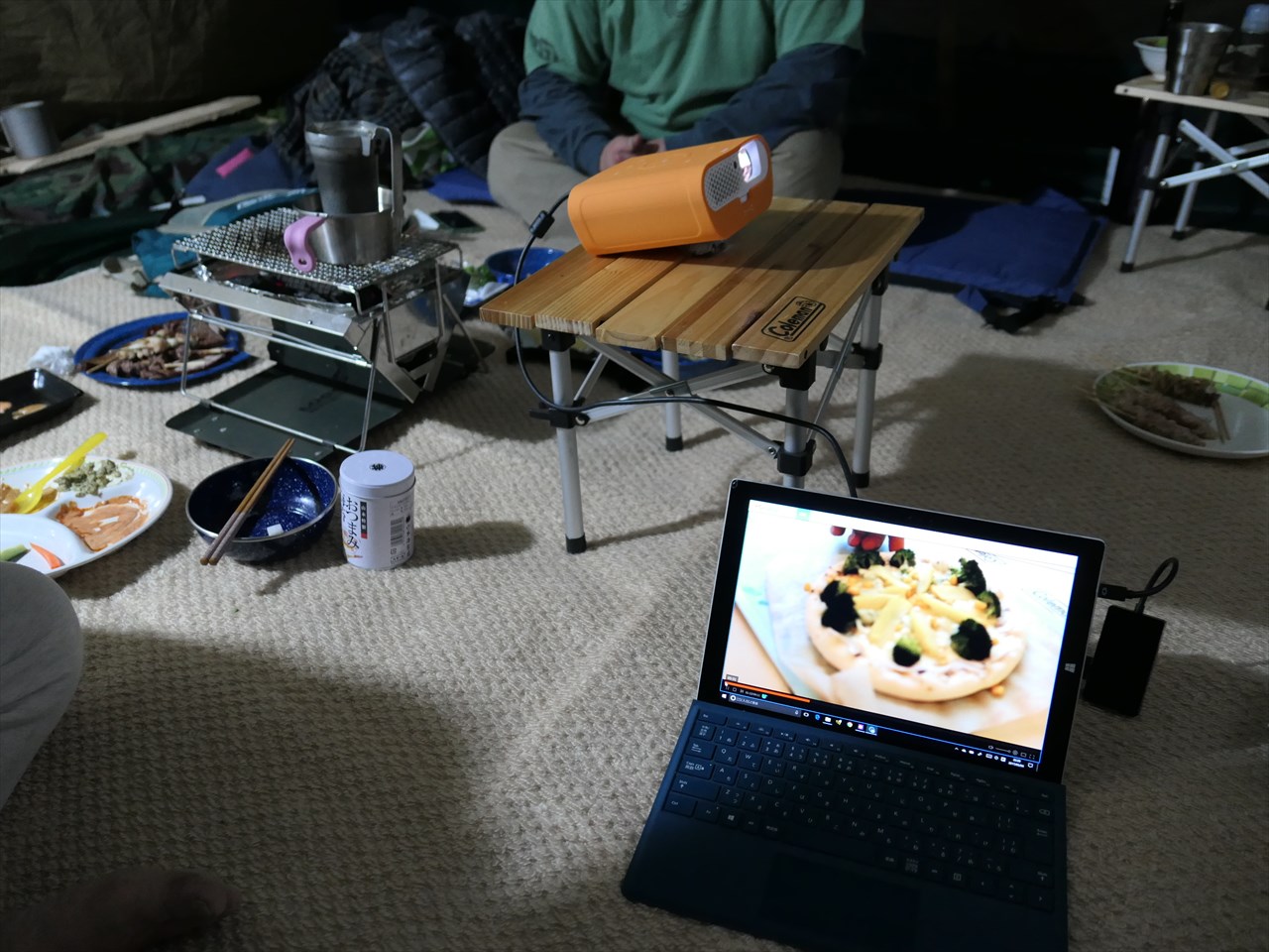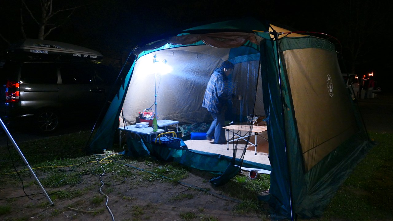 2日目の夜はテントの中で~限られた空間でも短焦点だから問題なし!