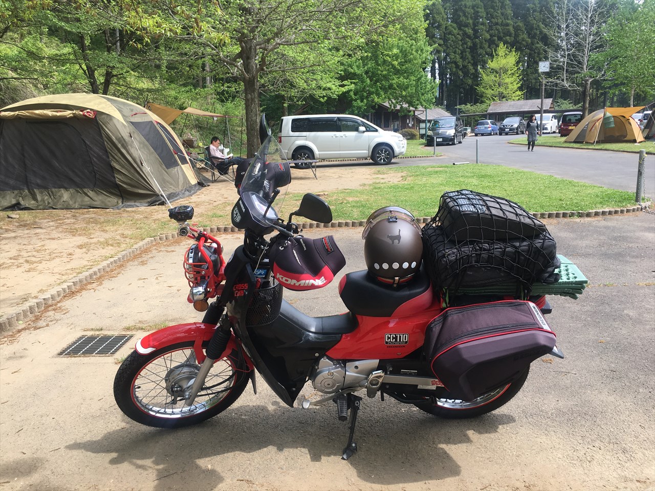 GW、さっそく「GS1」をバイクに積んでキャンプ場へ