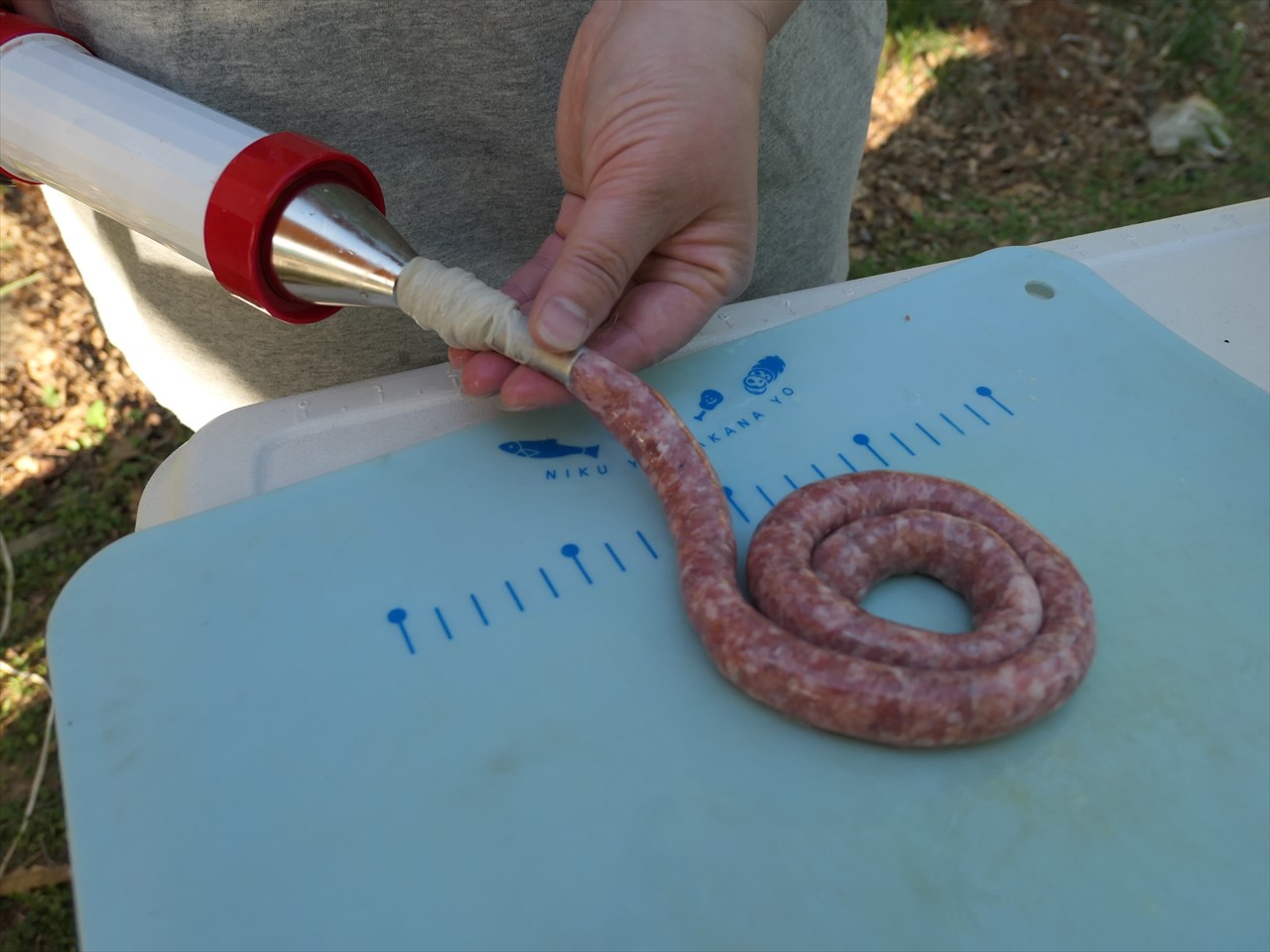 「この後、ソーセージの皮が絡まっちゃって大変だったの!」