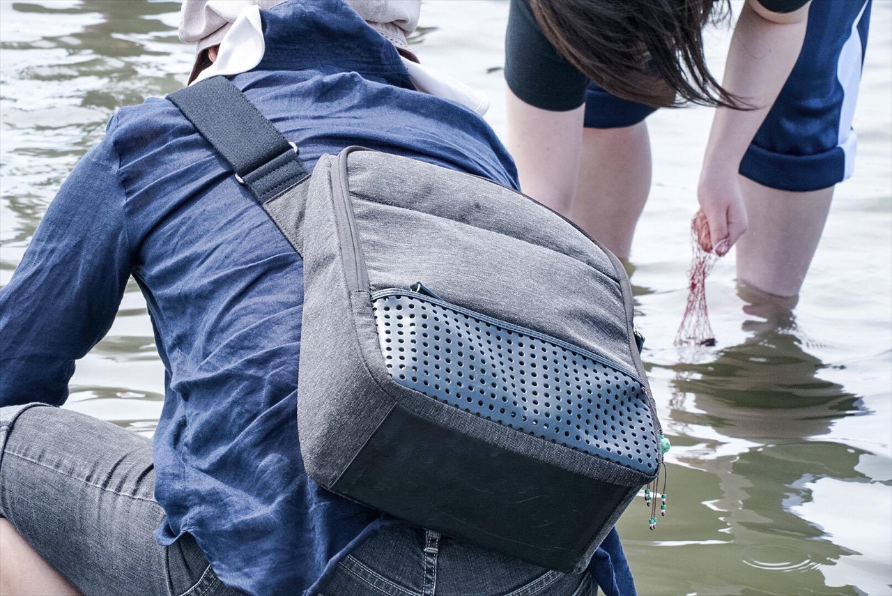 かなり使っている。これは千葉県富津の潮干狩り会場だ。実はこの時、観光プレスツアーにご招待いただき、一泊二日で観光地をみっちり飛び回ったのだが、バッグはこれで。この中に実はパソコンも歯ブラシも化粧ポーチも入ってる。
