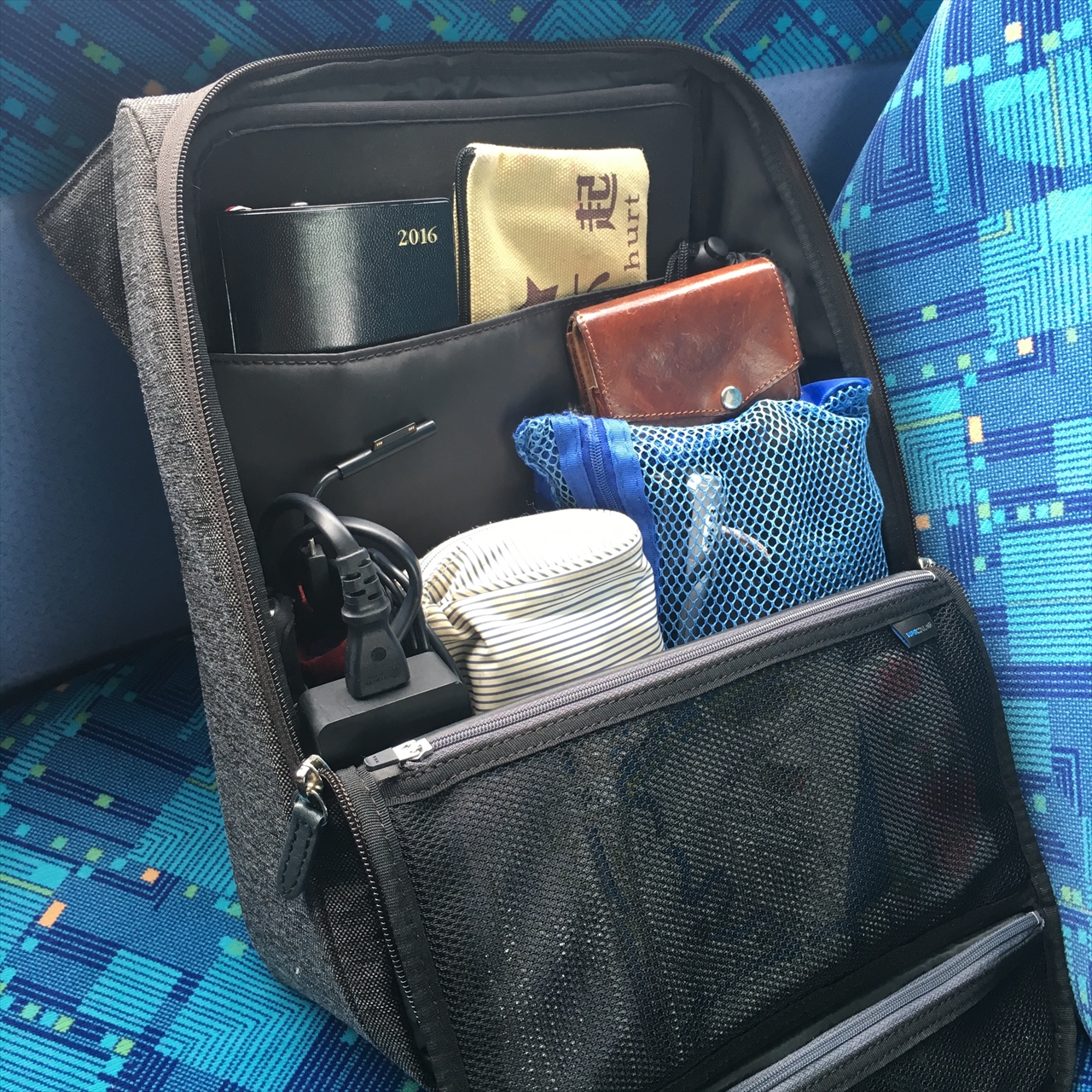 私は自宅が千葉県の香取市で、そこから日帰りあるいは数泊で頻繁に上京する。その時の足は高速バスなのだが、荷物はだいたいこのパターン。一番奥に入っているのはSurface PRO3。使い始めてまもなくニ年だが、パソコンがコンパクトになったことで、行動の自由度は格段にあがった。