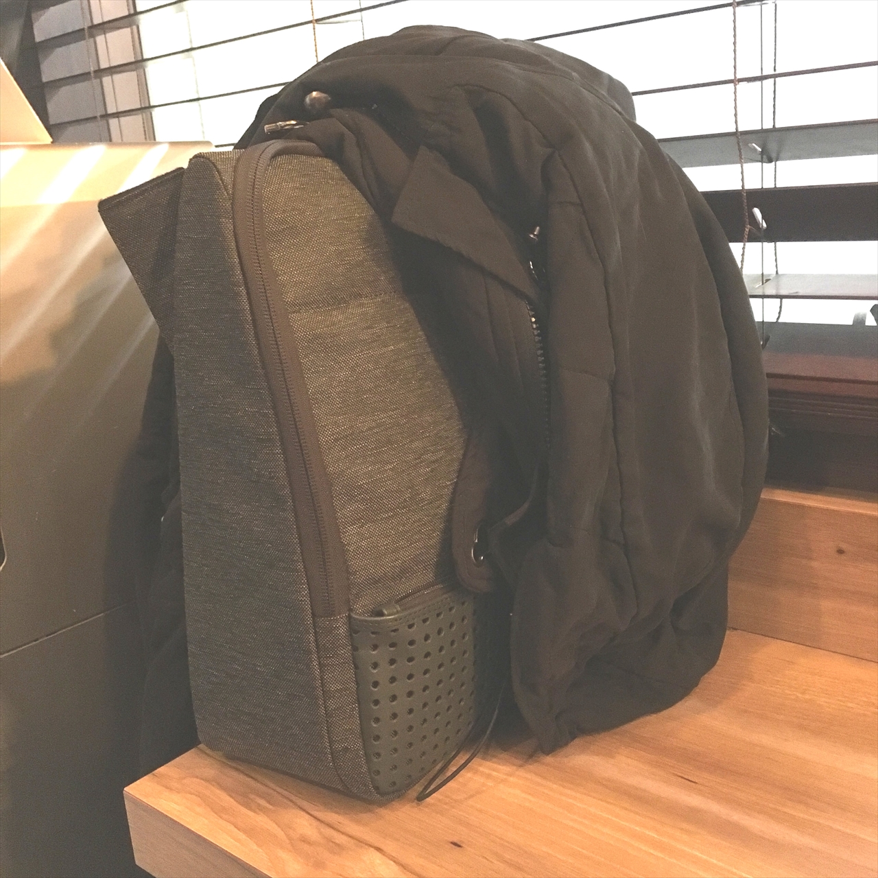 私はノマド派ではないので、ここでカパッとバッグ開いて仕事道具をここから出し入れするニーズはあまりないのだが、この使い方は何気に便利。
