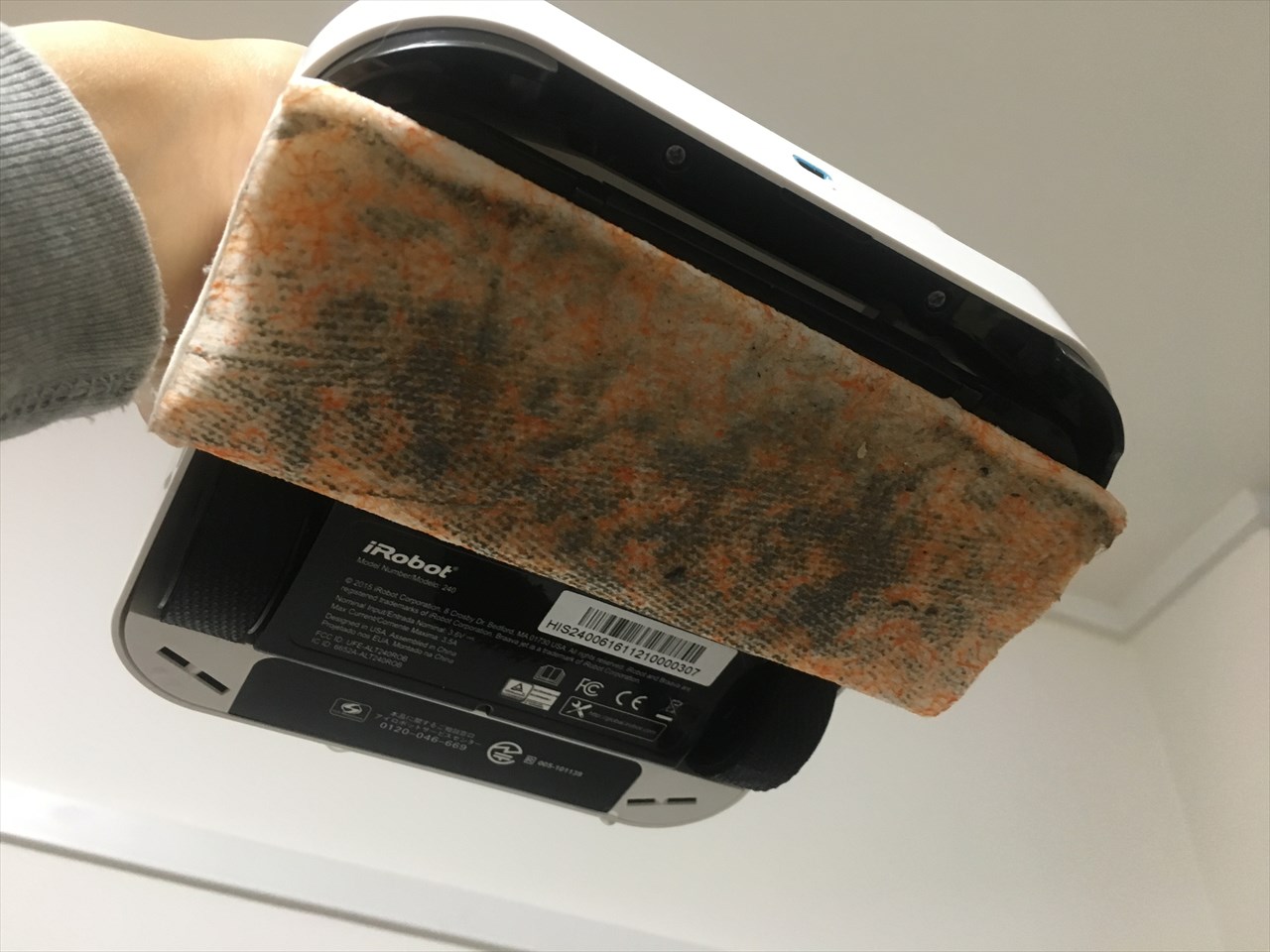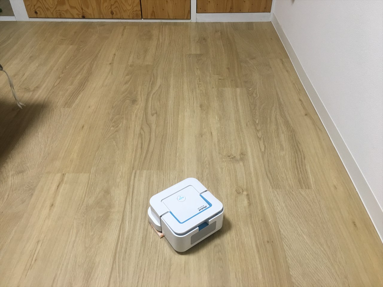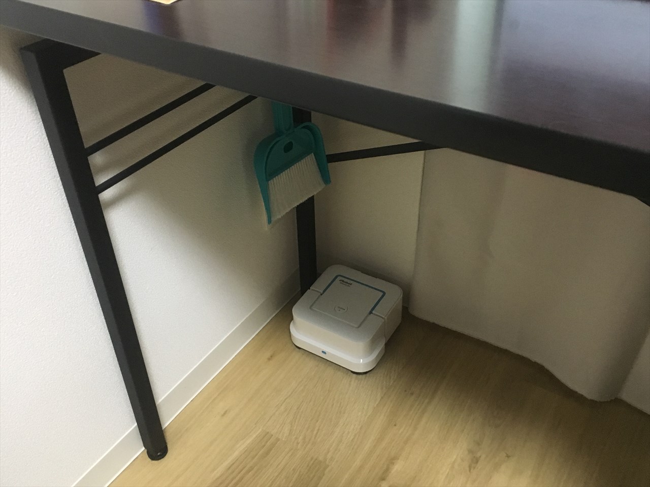 机のキャビネットの下にも潜って拭き掃除してくれる。目視では確認していたが手が届かなかった場所にたまった埃もきれいに除去してくれかなり気分スッキリだ。定規にトイレットペーパーでも巻いて掃除しようかと思っていたところなので。