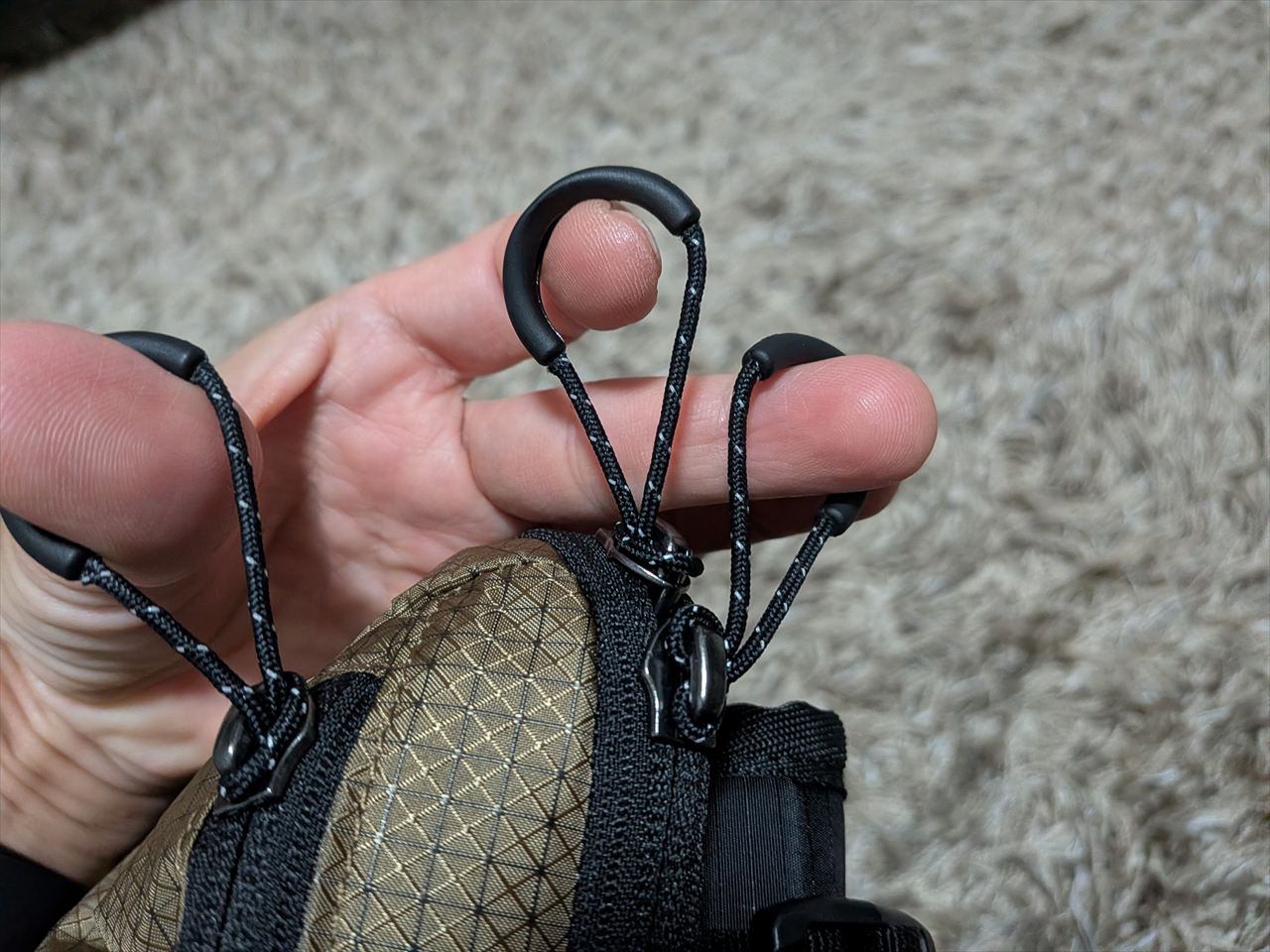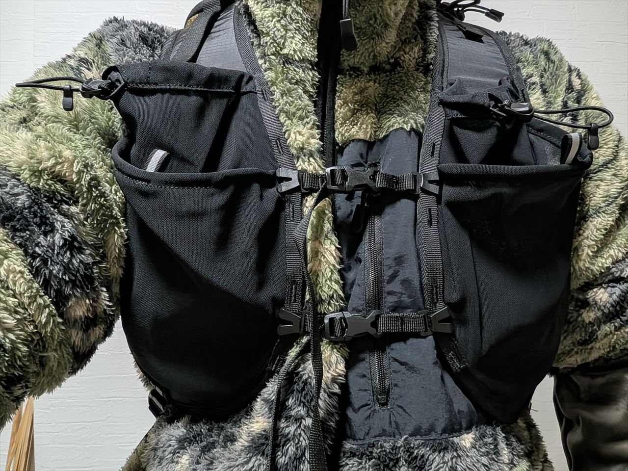 ここも4つのポケットすべての口にコードがつけられキュッと締められるので、トレランなどで使う場合も安心ですね。