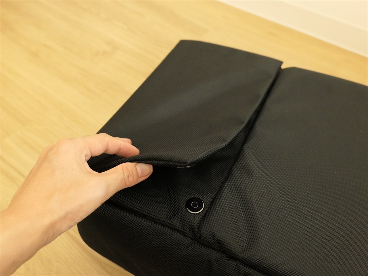 ちなみに上の写真を見ると、サイドに「手提げの取っ手」がついているのがわかるだろう。マジックテープで留められている。