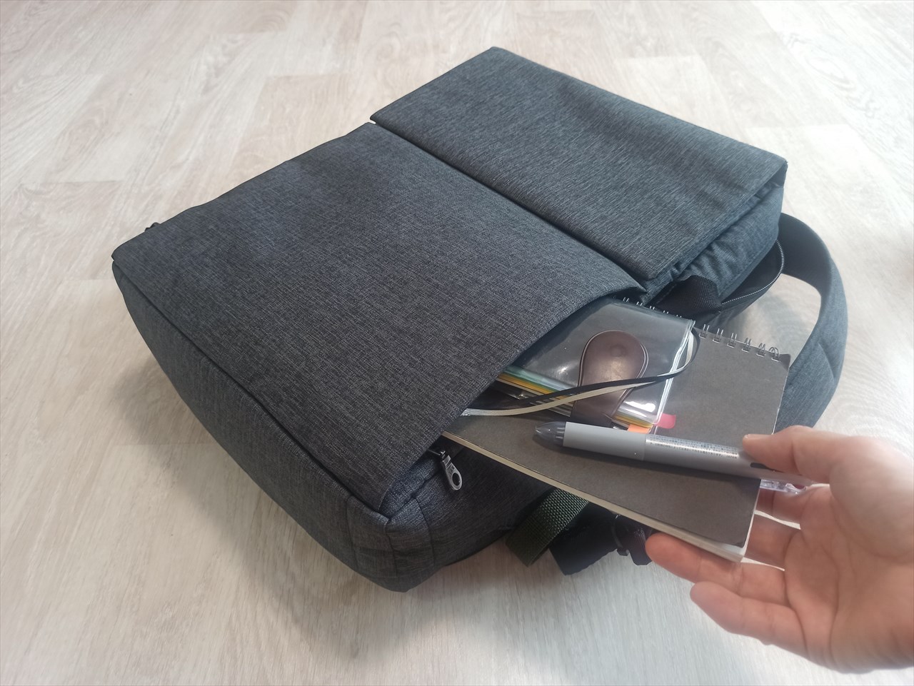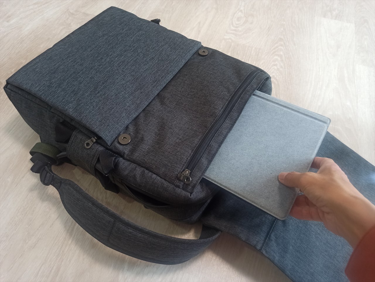 パソコンは大きなポケットにすっぽりと。