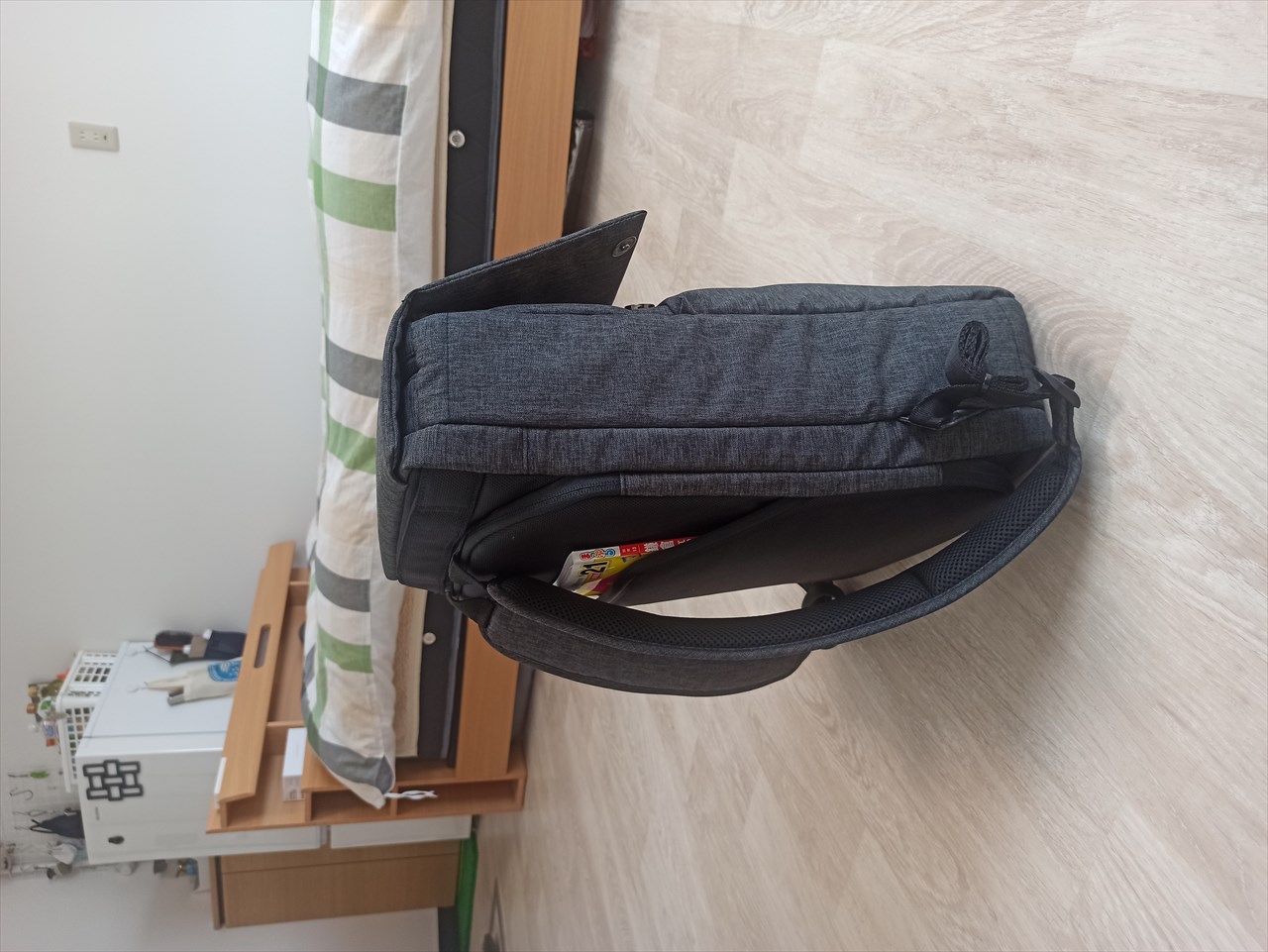 本来の目的は、横持ちビジネススタイル時のショルダーストラップ格納場所なんだけど、薄いものは入るので、ガイドブックやとりあえずパンフレットを入れておくのに便利なスペースだ。