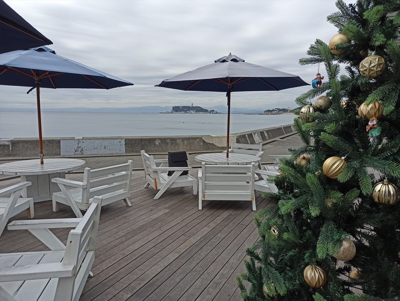 江の島を眺めながらテラスで食事ができる海辺のレストランだ。