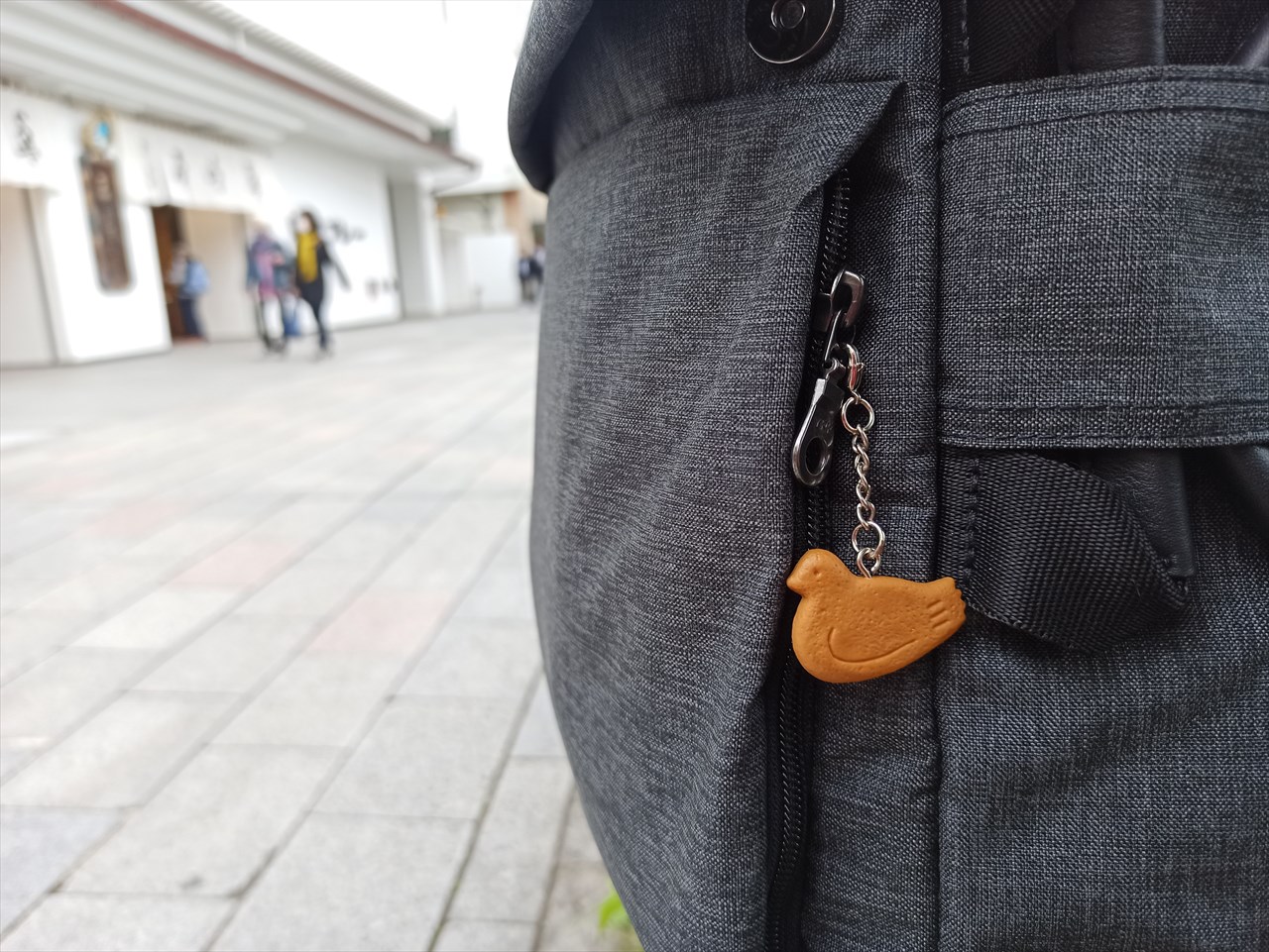 私が買ったのは、500円の鳩サブレーキーホルダー。すっごいラブリーなので早速・・・