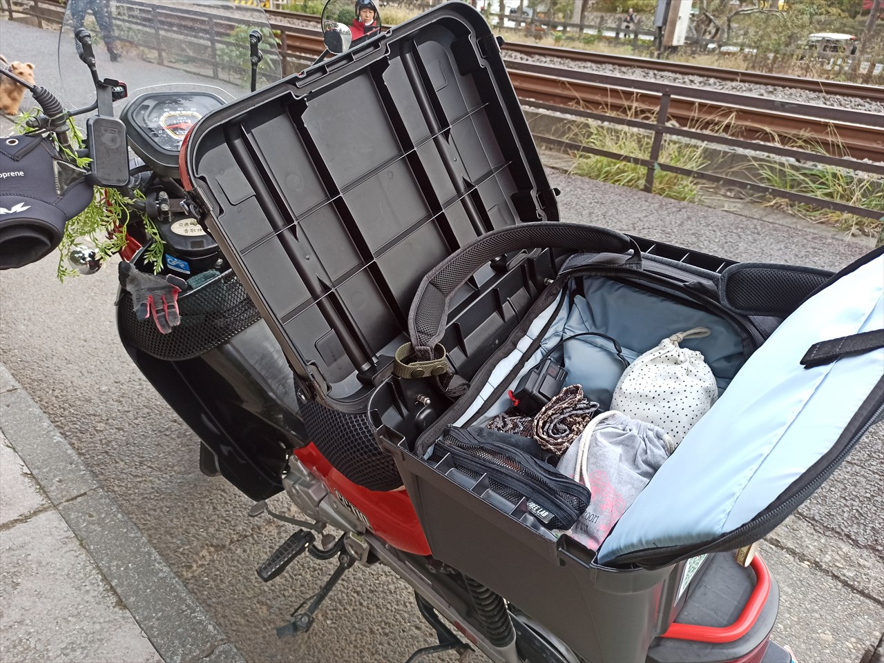自分のバイクは「クロスカブ」というHONDAカブシリーズ。そしてカブ乗りに人気の箱がアイリスオーヤマのいわゆるホムセン箱(「密閉RVBOX カギ付 460」や「職人の車載ラック専用 密閉ハードBOX」)。