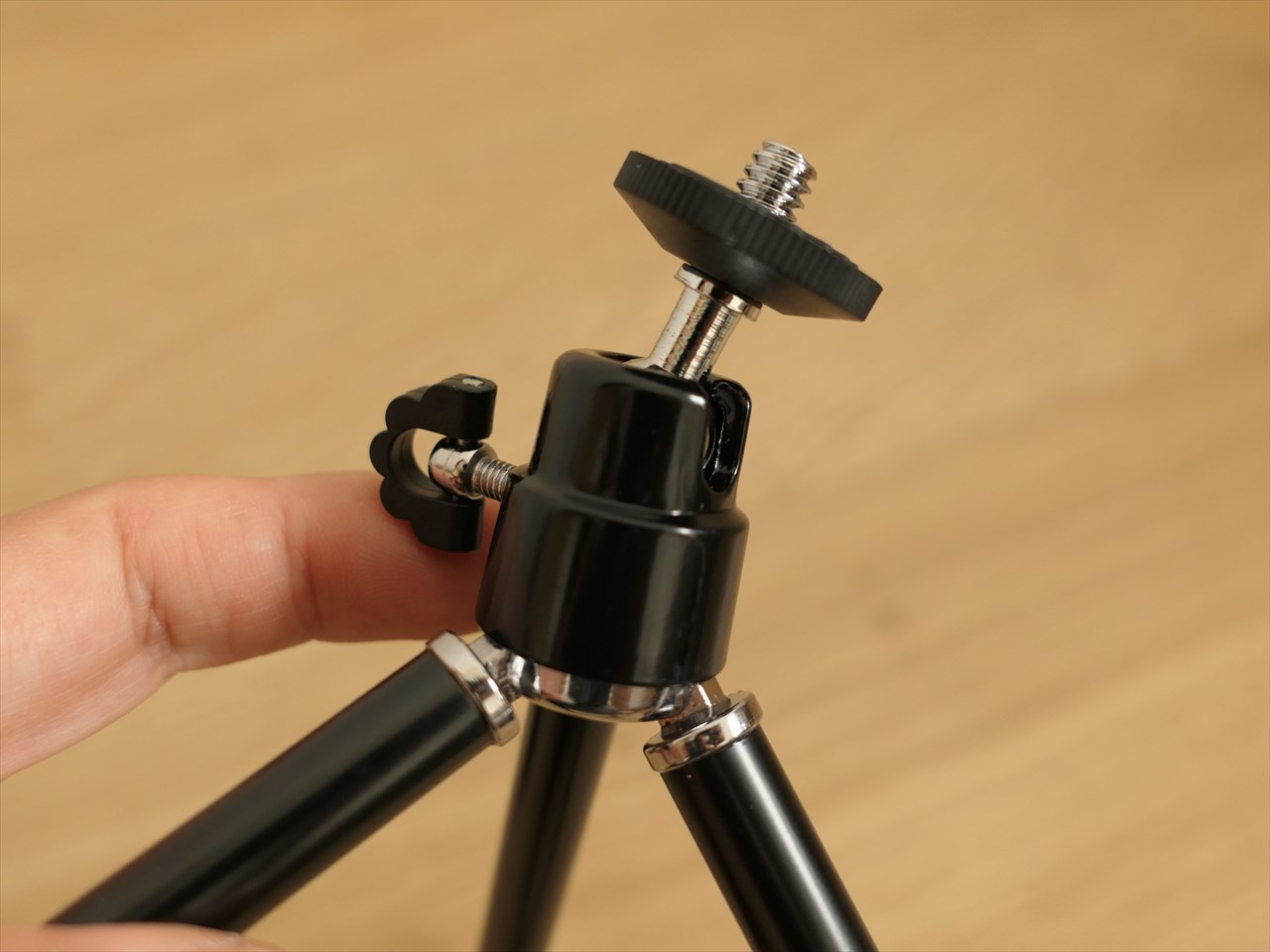 底辺は中央部分がちょっと盛り上がった状態になっていて、中央に三脚ネジ穴がある。