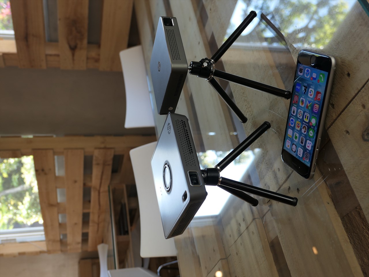 「MP100」の140gという重さは、最新の5.8インチiPhoneXP(177g)より軽い。私が利用している4.7インチのiPhone6Sが143gなのでそれと同等。このくらい軽いと「使うかどうかわからないけど持ち歩く」こともできる。バッテリー充電で利用できるので、キャンプ場で林間に布を吊るしナイトシアターなんて楽しみ方もできる。