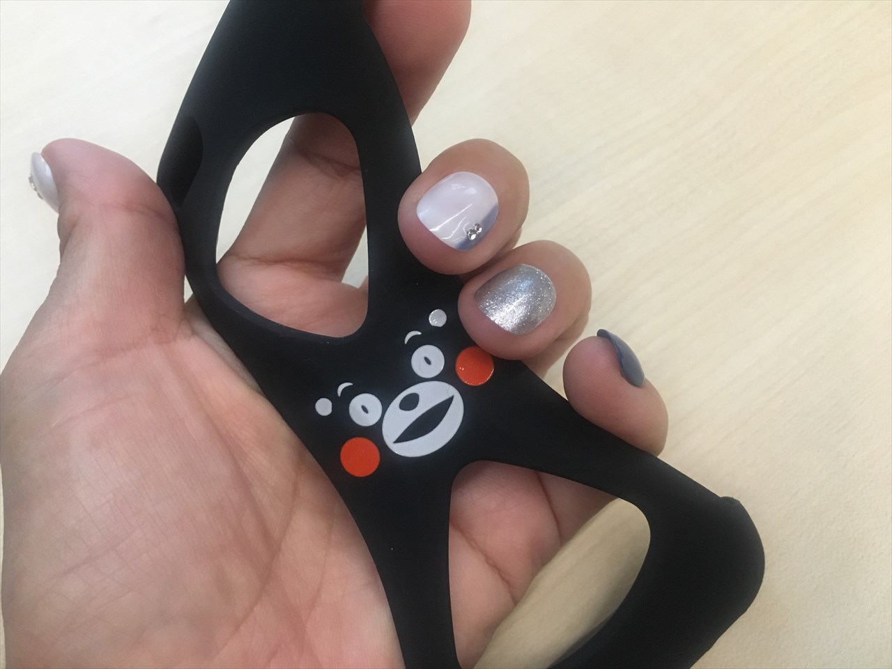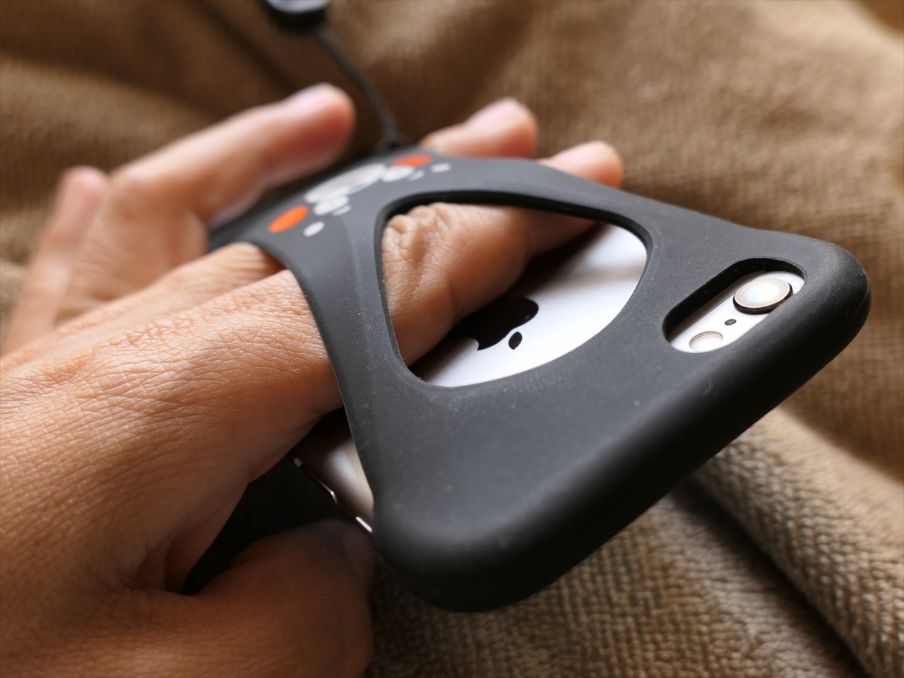 8の字型の裏面のシリコンは、いろいろな持ち方で指を挿入したり引っ掛けたりすることができるので、自分に一番合ったスタイルで使うことができる。よくできているなと感心した。