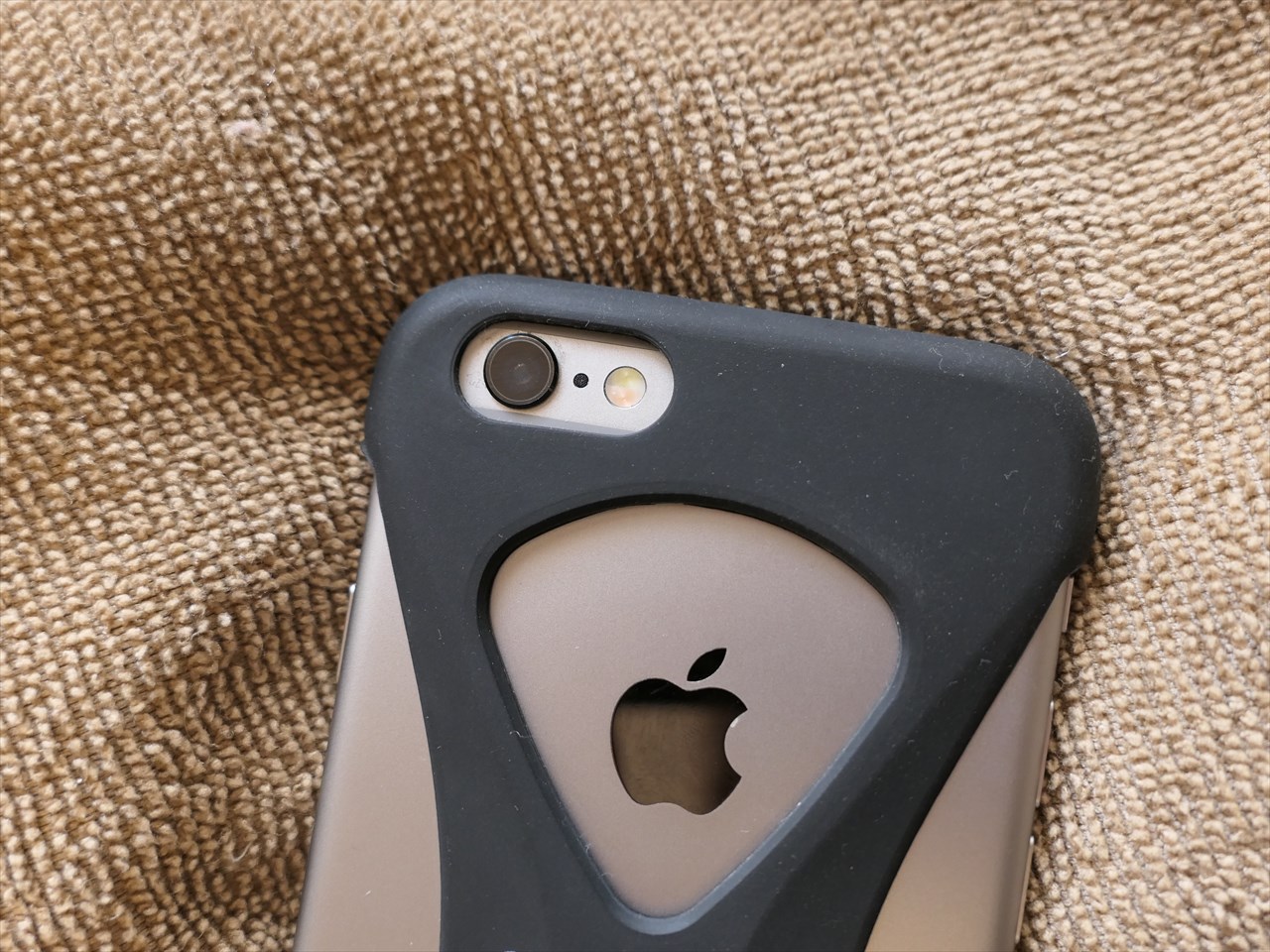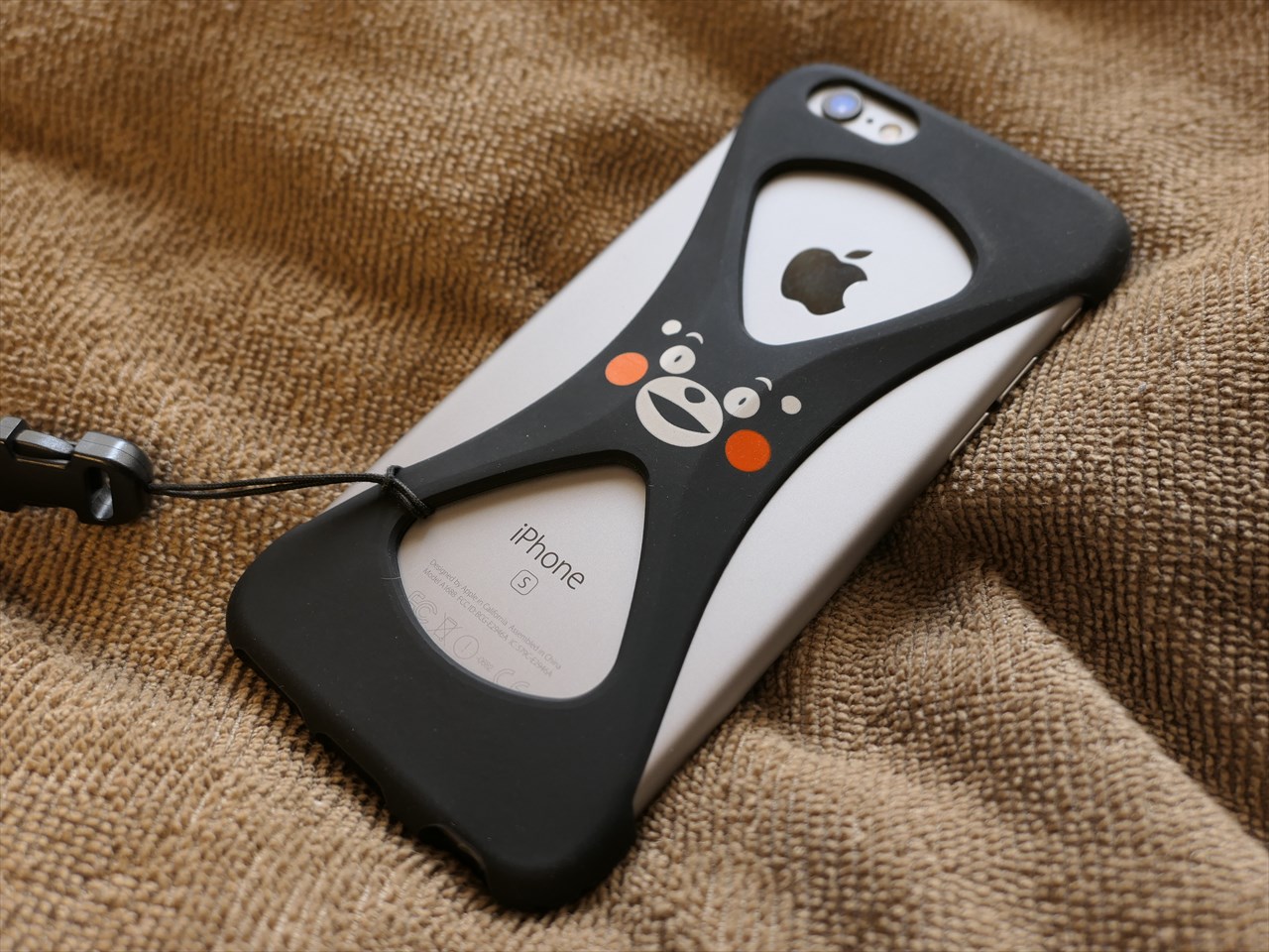 「8」の字型になっており、カメラ・リンゴロゴ・iPhoneの文字が見えるようになっている。よく見るとわかるが、8の字中心の交差部分はやや盛り上がっている。