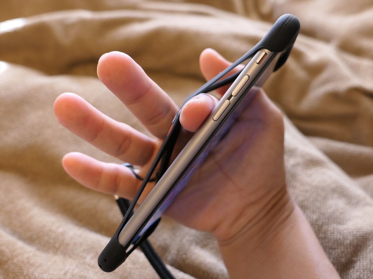 ただiPhoneの本体の美しさを久しぶりに感じることができているのも確か。シリコンの手触りもよく、指を挿入して本体をホールドすれば、iPhone本体の触感の良さも感じられる。