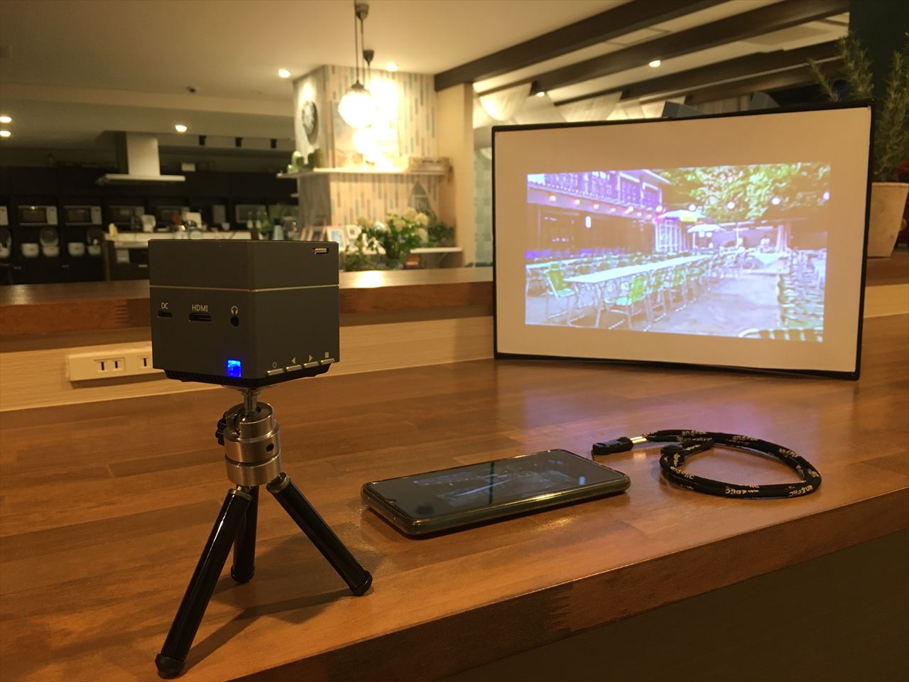 モバイルバッテリー接続でもいけるので、キャンプ場なんかで野外映画上映もできる。