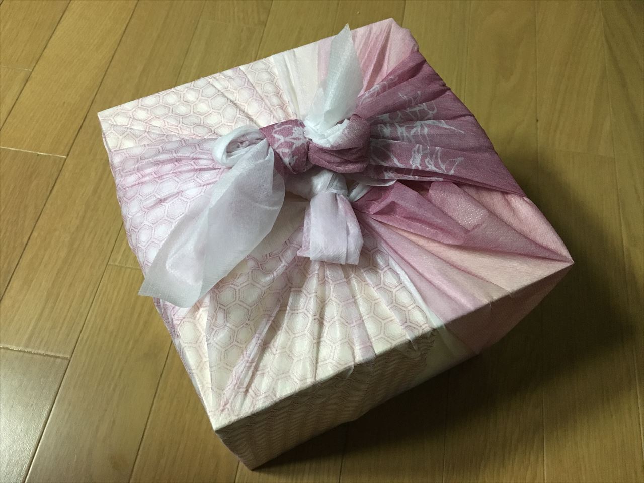 箱の中には薄いふろしき風の大きな和紙に包まれた白木の三重の箱。