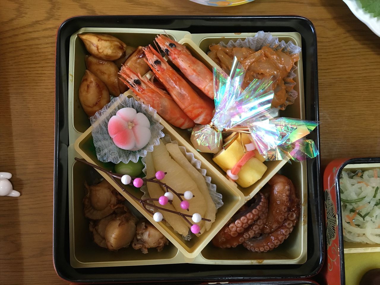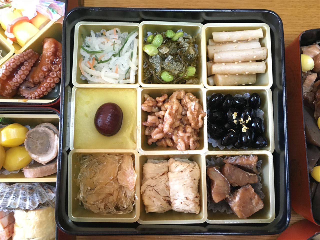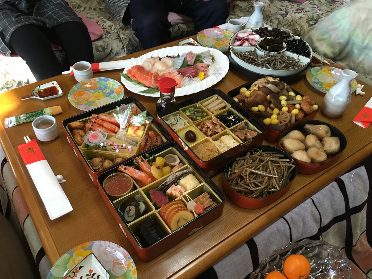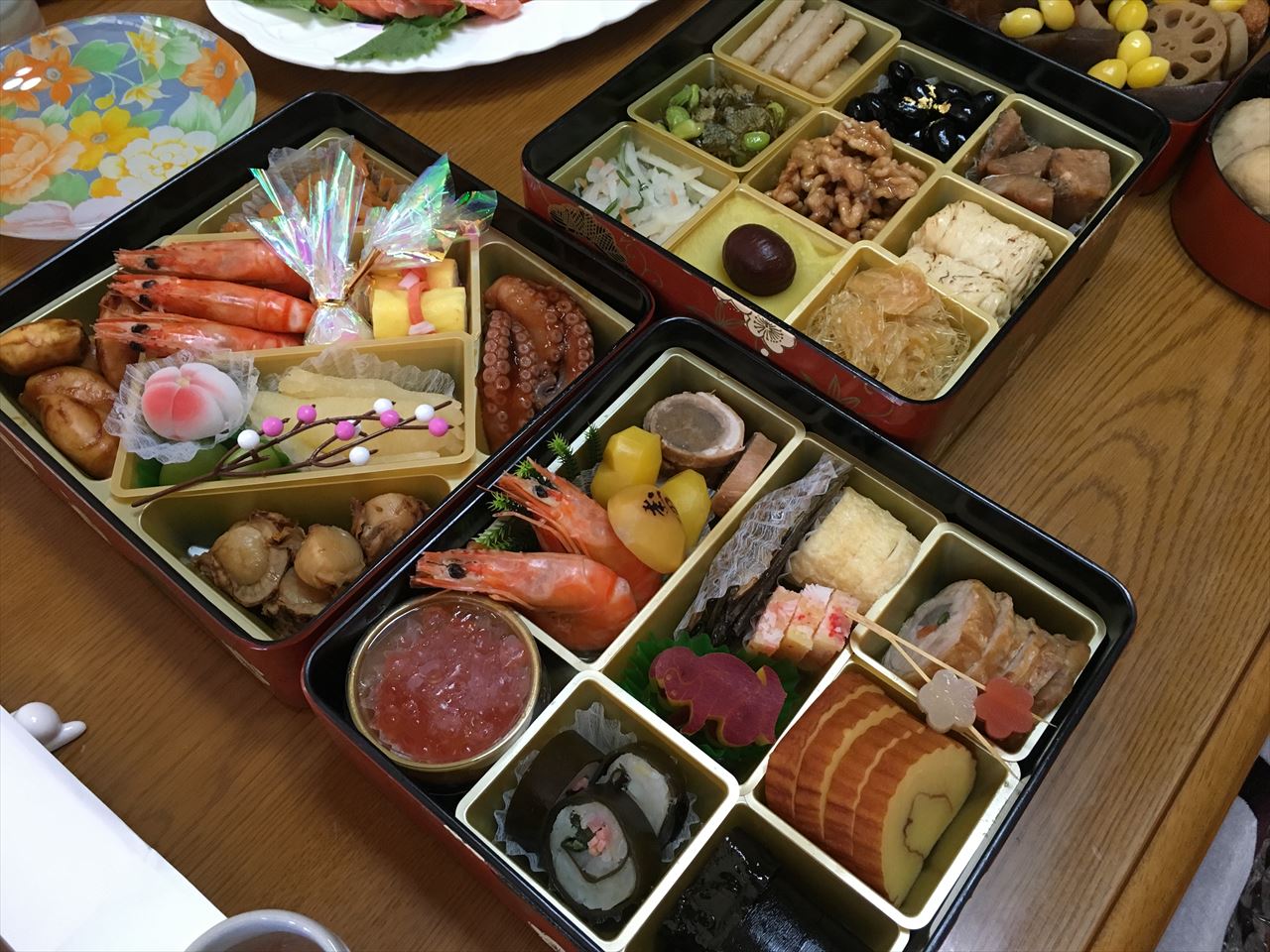 他に自宅で用意していたのは、黒豆と田作り、なます、酢だこ、そしてきんぴらごぼうに刺身。