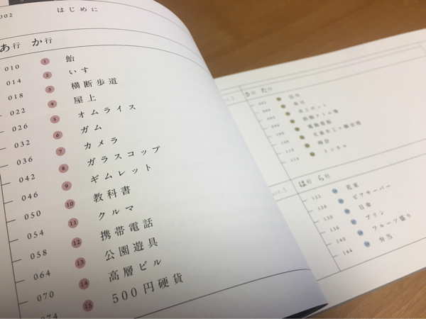 見開き2ページごとに完結した内容になっているので、写真を撮って公開するのも本来好ましくないのだが、どういう体裁の本かが言葉だけだと伝わらないので、一部だけ。