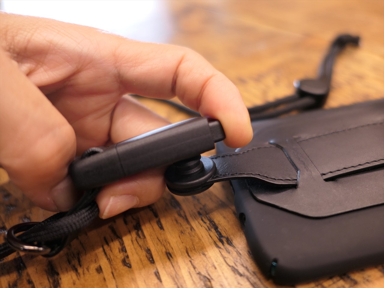 製品名は「旅ストラップ」だけど、実は肝心のストラップ~紐~部分は含まれていない。製品はスマホにストラップを取り付ける部分で、ストラップ自体は自分で別途調達する。