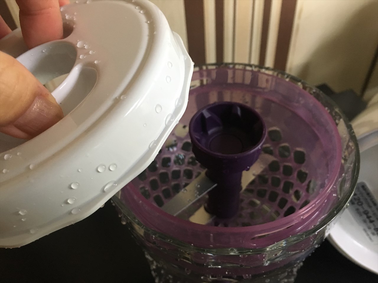 本体である蓋部分はもちあげればすぐ外れるので、下だけカットされた野菜ごと調理台に持っていったり、使い終わったら水洗いすればいい。