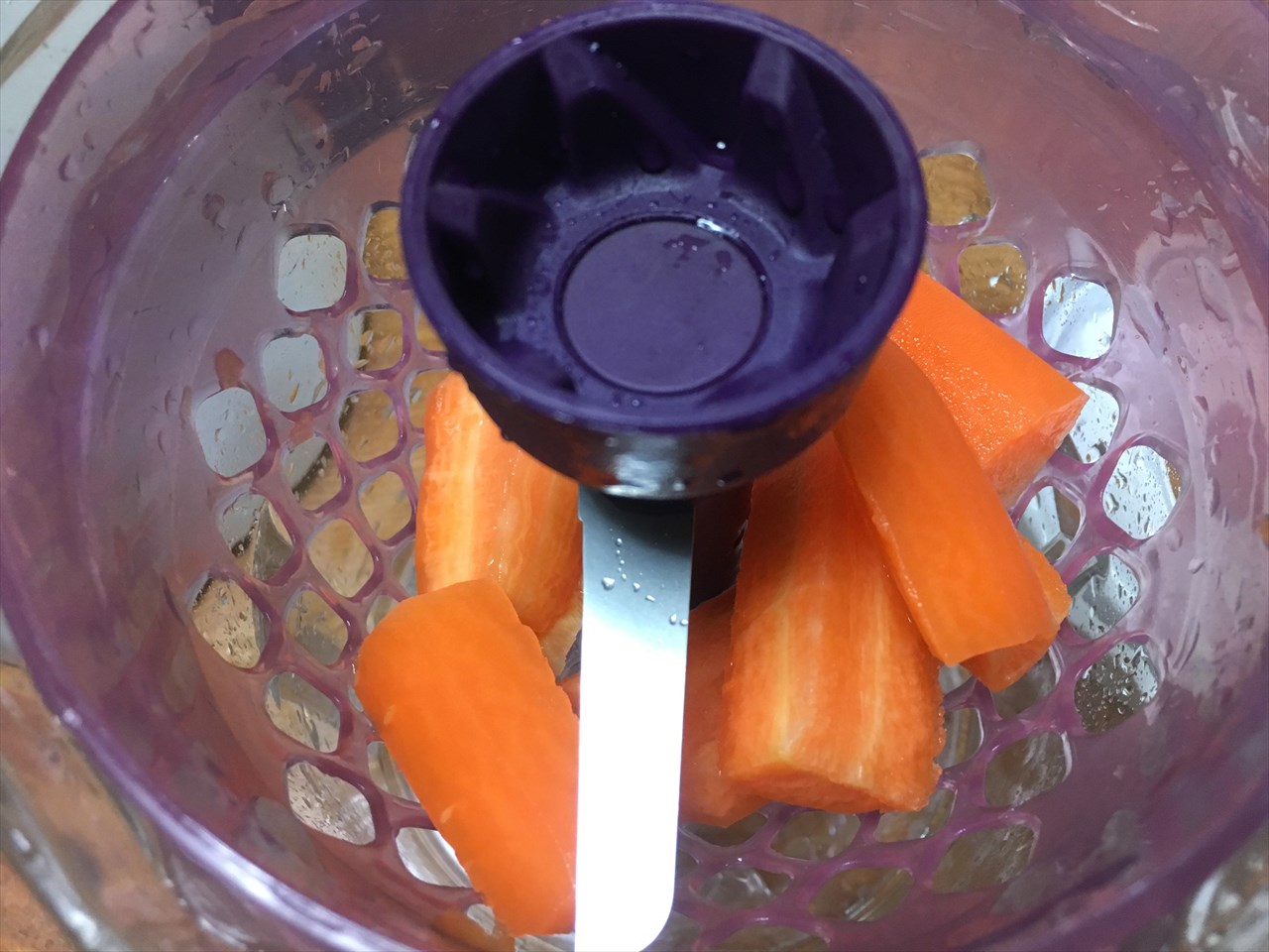 お椀型になっていて、カットされた野菜が下に落ちる作りになっている。これでサイズをある程度一定にするようだ。