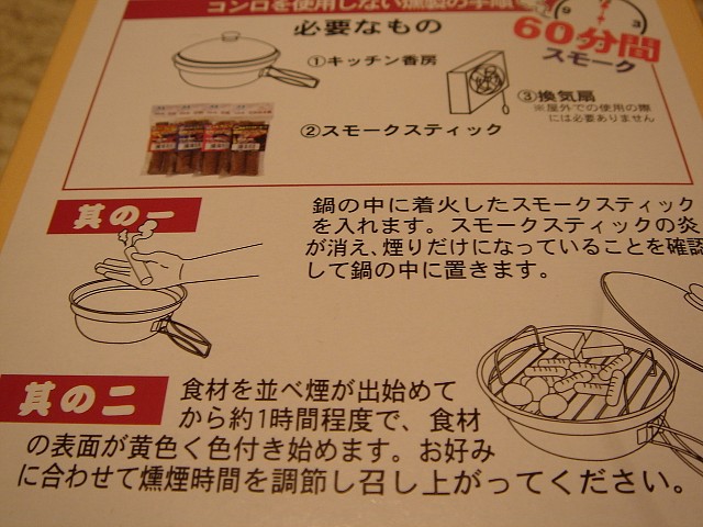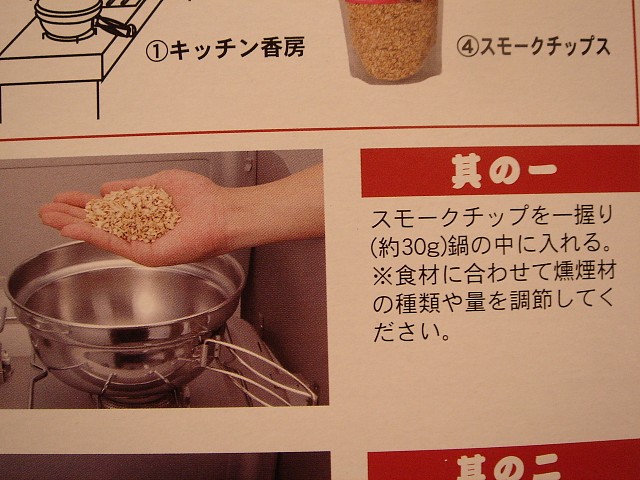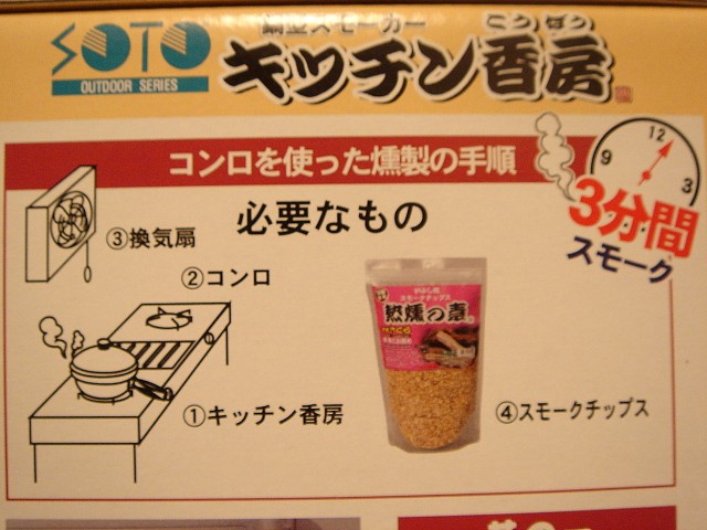 必要なのは、換気扇とコンロ、あと市販のスモークチップスとこのキッチン香房。