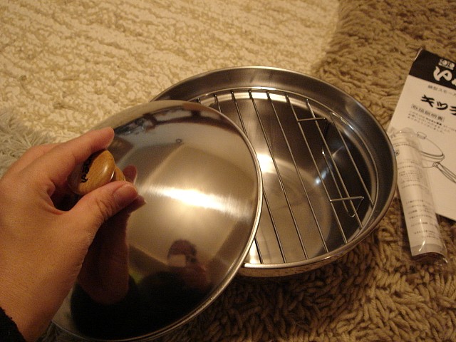100円ショップで、中華鍋と網、そして蓋になるものを探して組み合わせるべきだった。