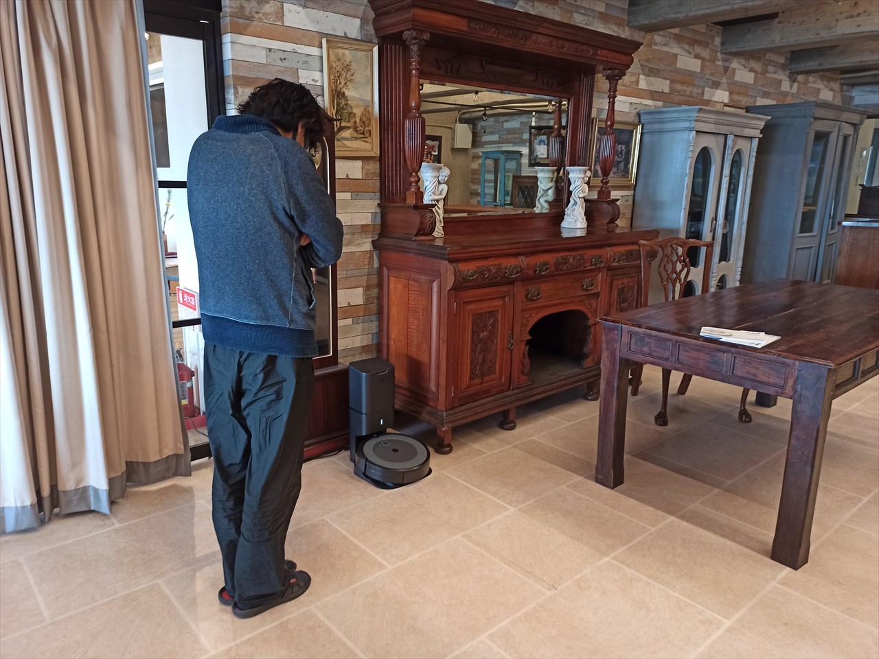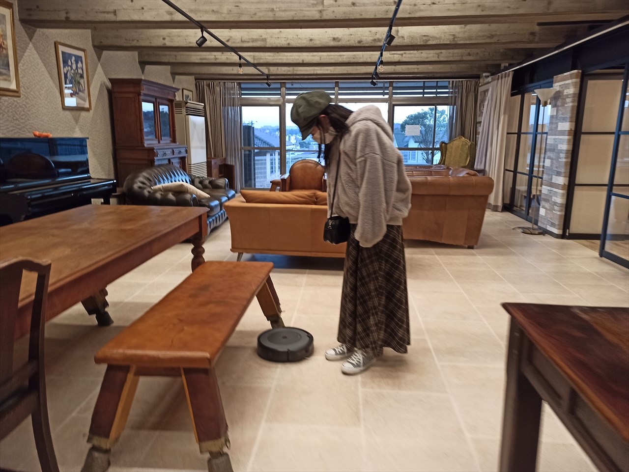 さらに、掃除中のルンバを追いかける居住者女性も。
