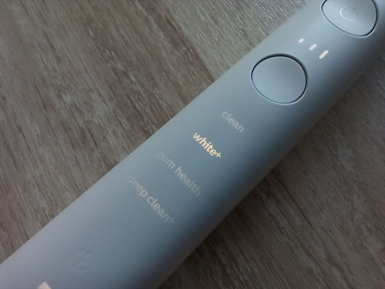- ホワイト+モード・・・歯の表面のステイン(着色汚れ)を落とす動作(2分間)の後に、歯を磨き上げ光沢を与えます(40秒間)