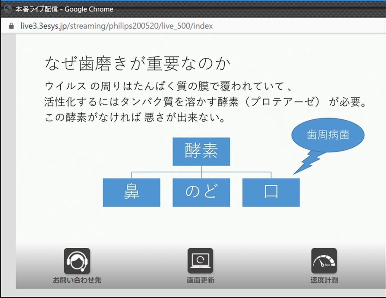 これに関しては「ウイルス プロテアーゼ 歯磨き」などで検索すると、歯科医中心にいろいろな情報が発信されており、理解もしやすいと思う。