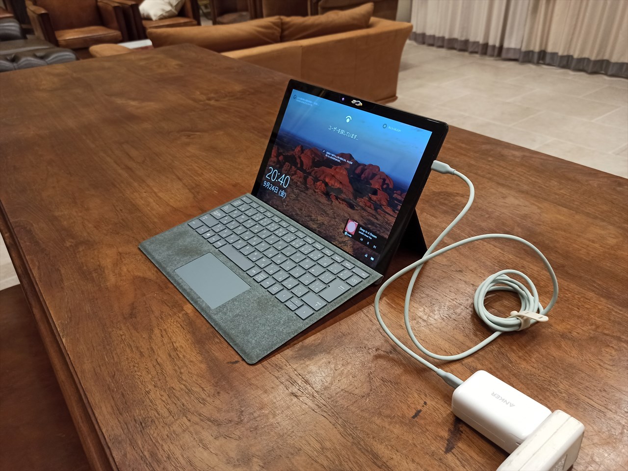 Surface Pro7のUSBポート(Type-C)はUSB PD対応で、ACアダプタを持ち歩かなくてもUSB充電が可能。ただUSB PD充電器やUSBケーブル、モバイルバッテリーの出力スペックが低ければ時間はかかる。