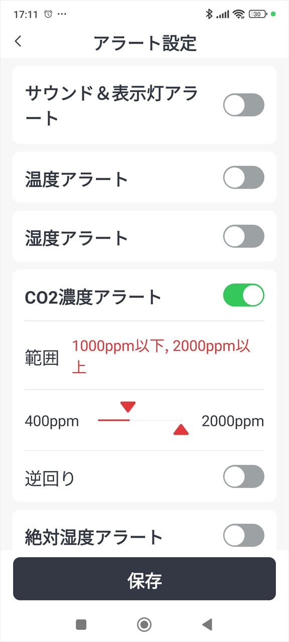 CO2濃度アラートの設定も変えられる。